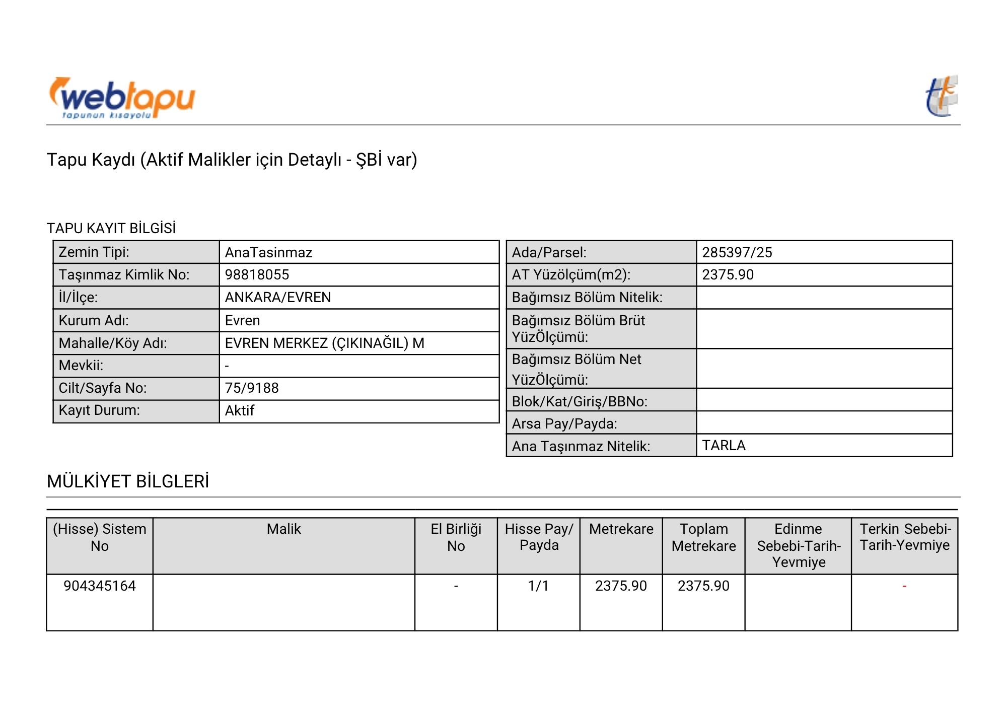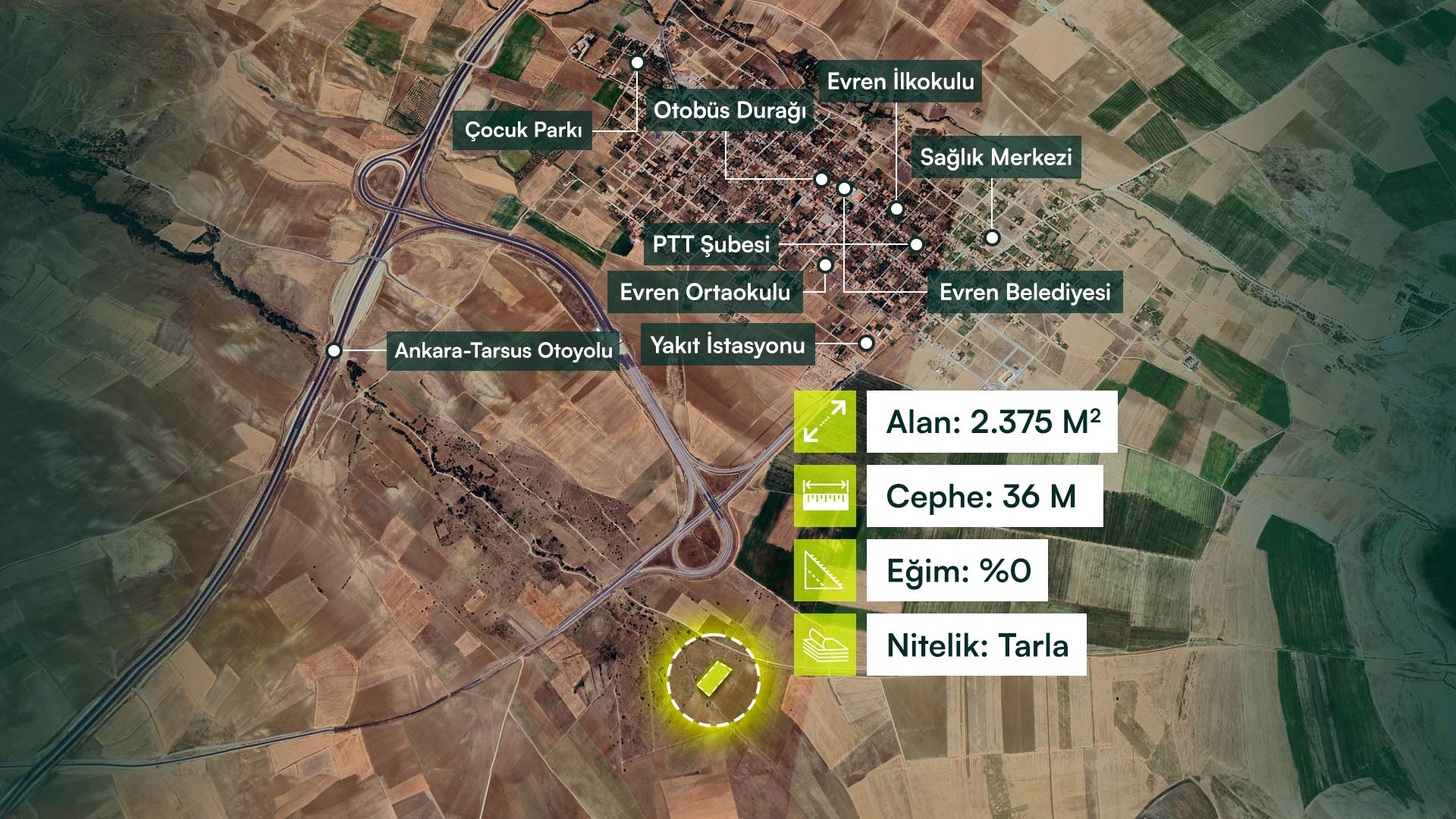 Ankara Evren Merkez'de, İlçe Merkezinde, TOKİ ve OSB'ye Yakın 2.375 m² Tarla