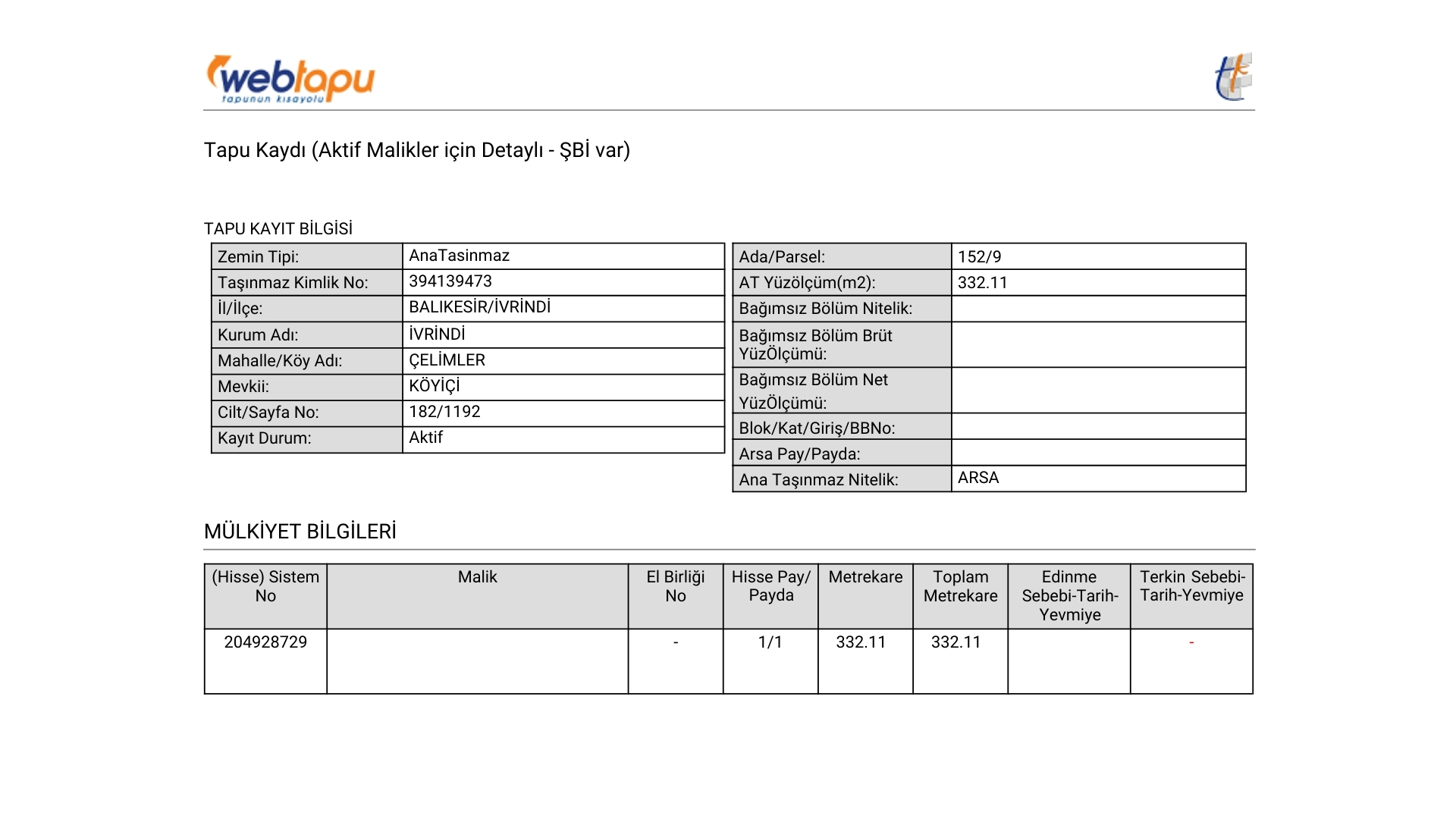 Tapu Durumu