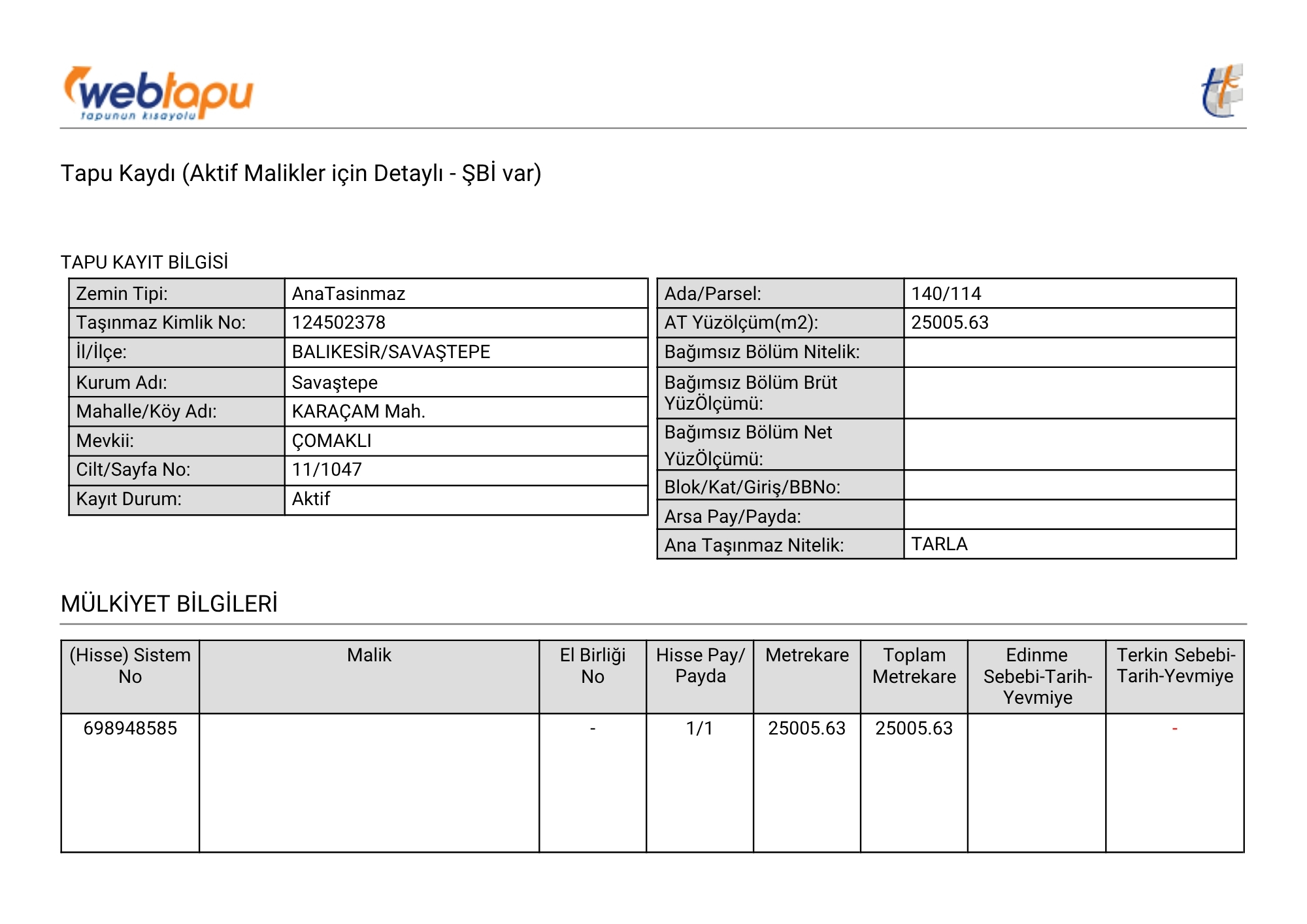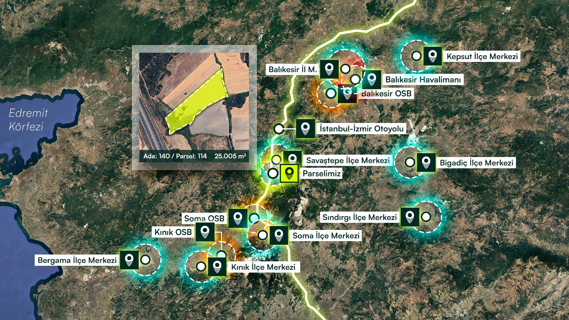 Balıkesir Savaştepe Karaçam’da, İzmir-İstanbul Yoluna Cephe, İlçe Merkezine Yakın, 25.005 m² Tarla
