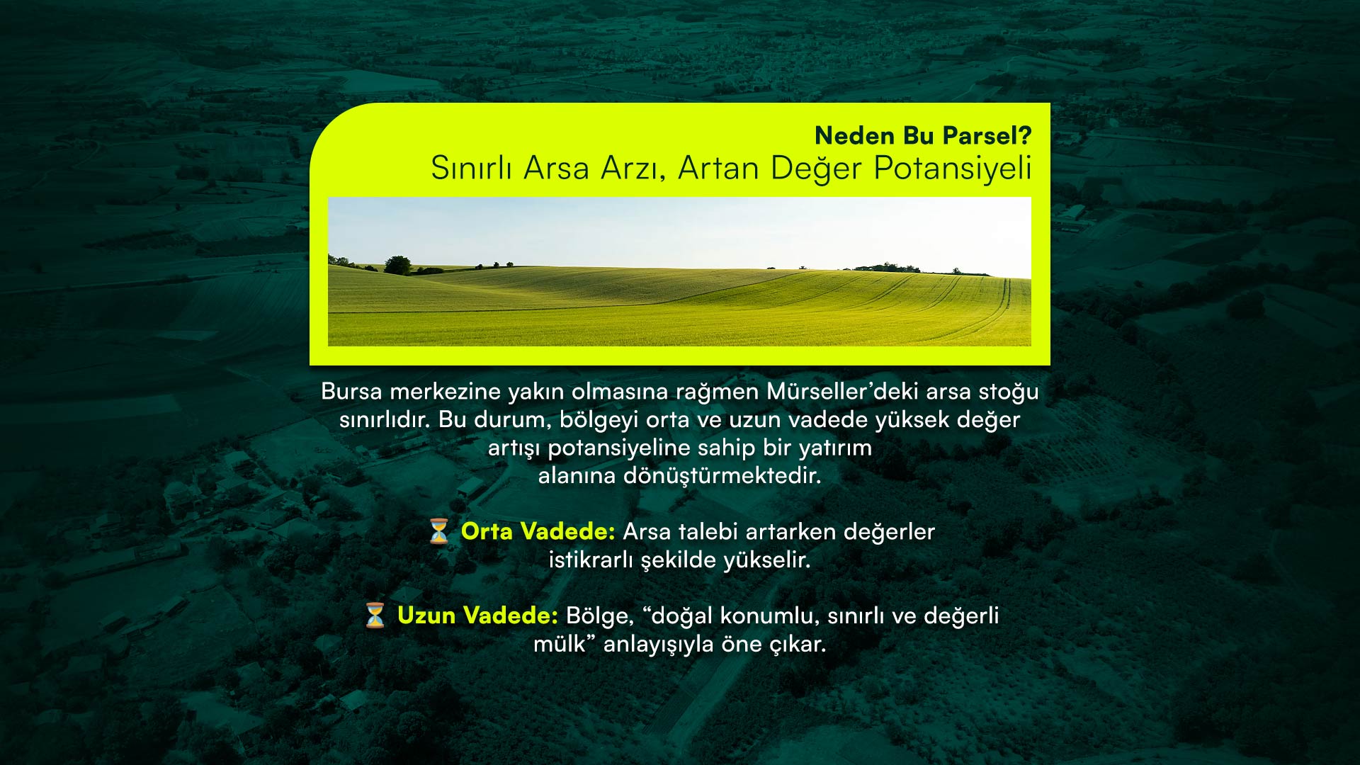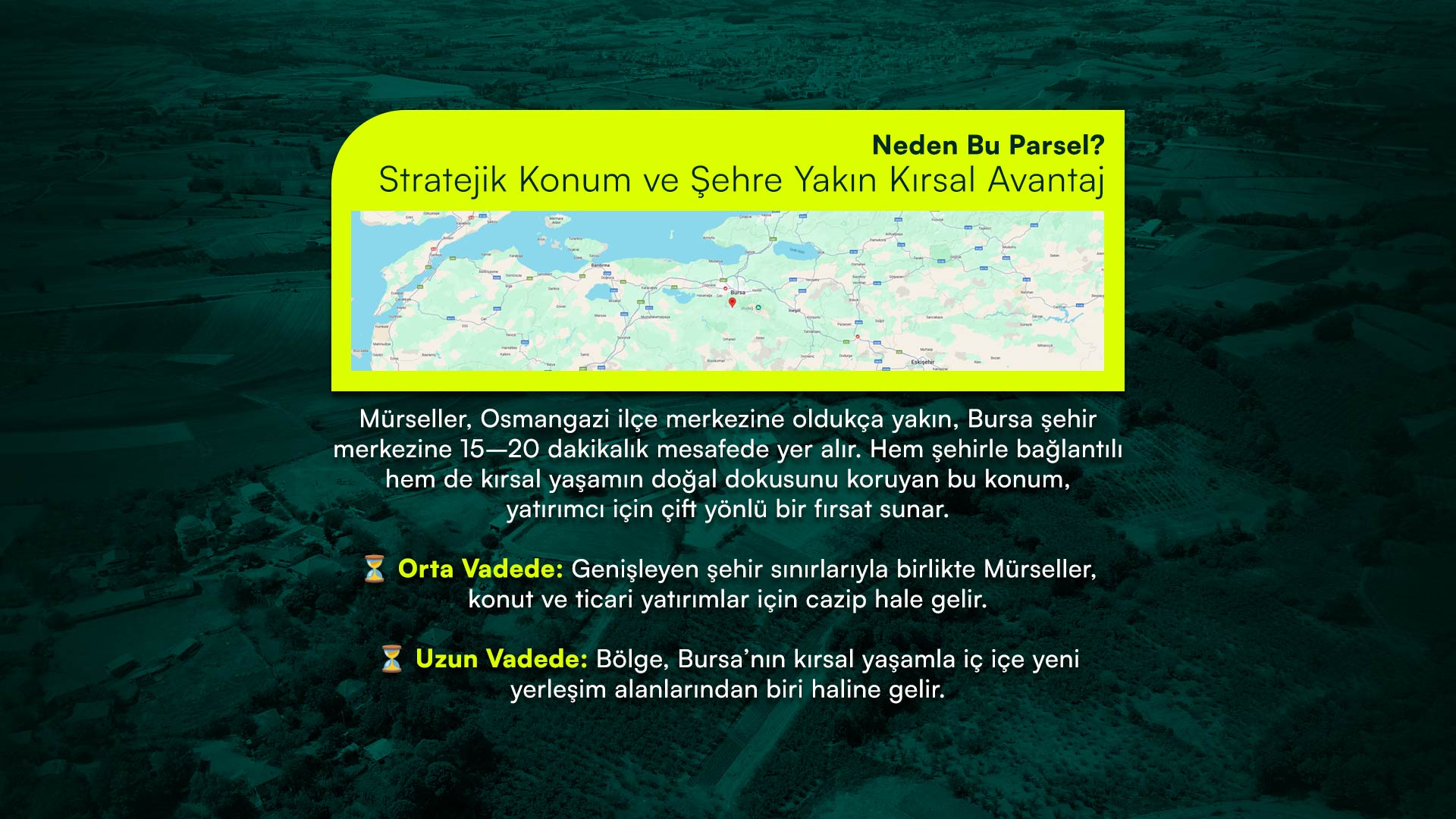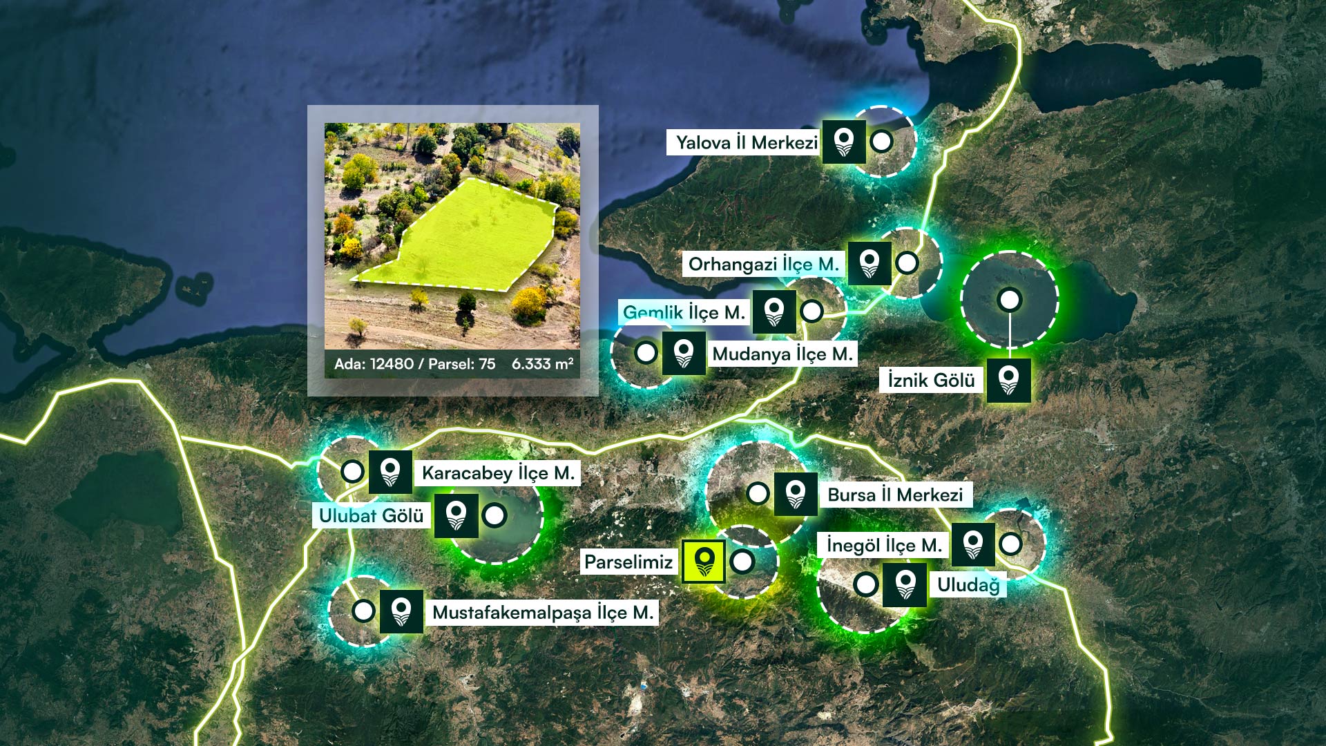 Bursa Osmangazi Mürseller’de, Emsallerinin Altında Fiyatla, İl Merkezine Yakın, 6.333 m² Tarla