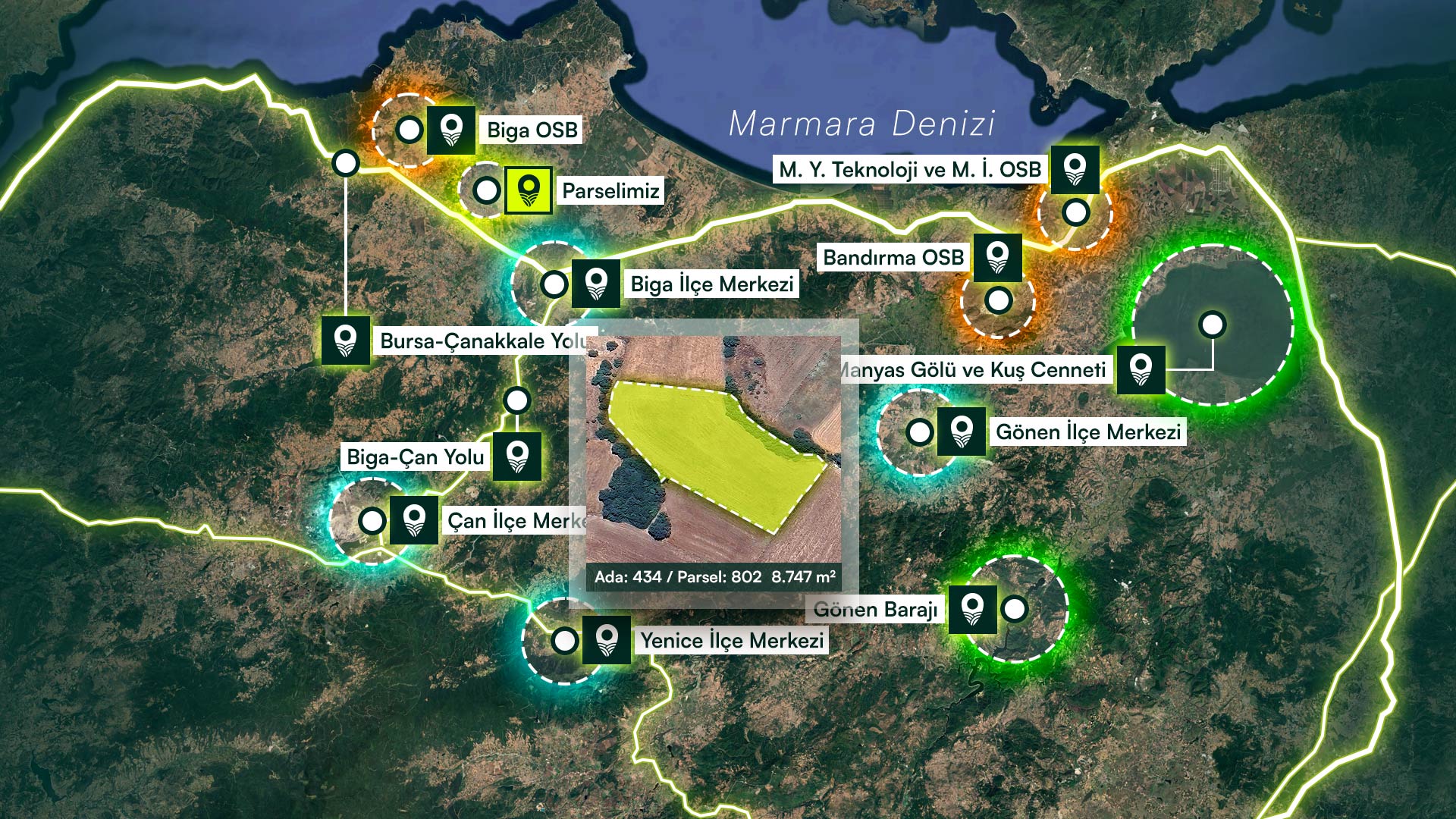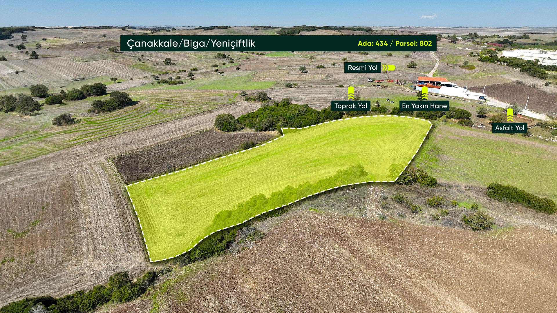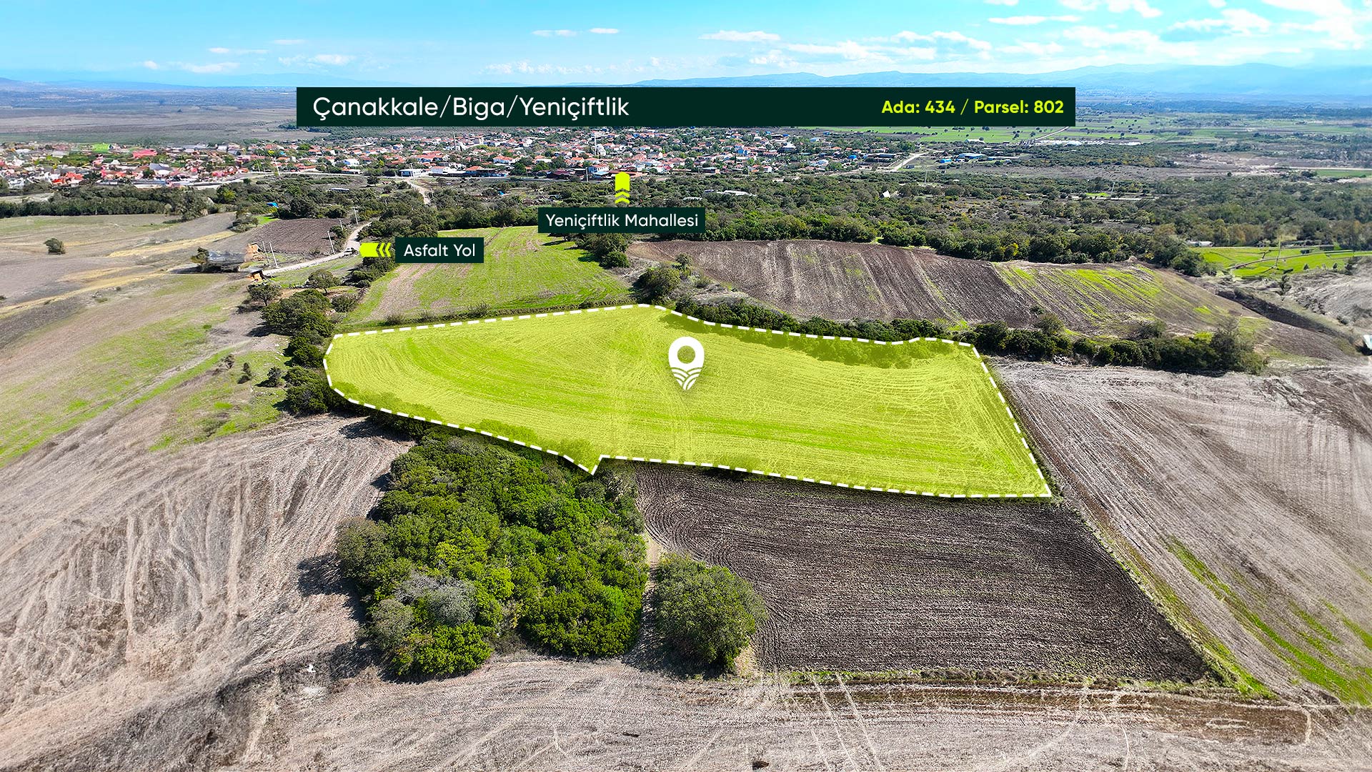 Çanakkale Biga Yeniçiftlik’te İmara Sınır, İlçe Merkezine Yakın, 8.747 m² Tarla