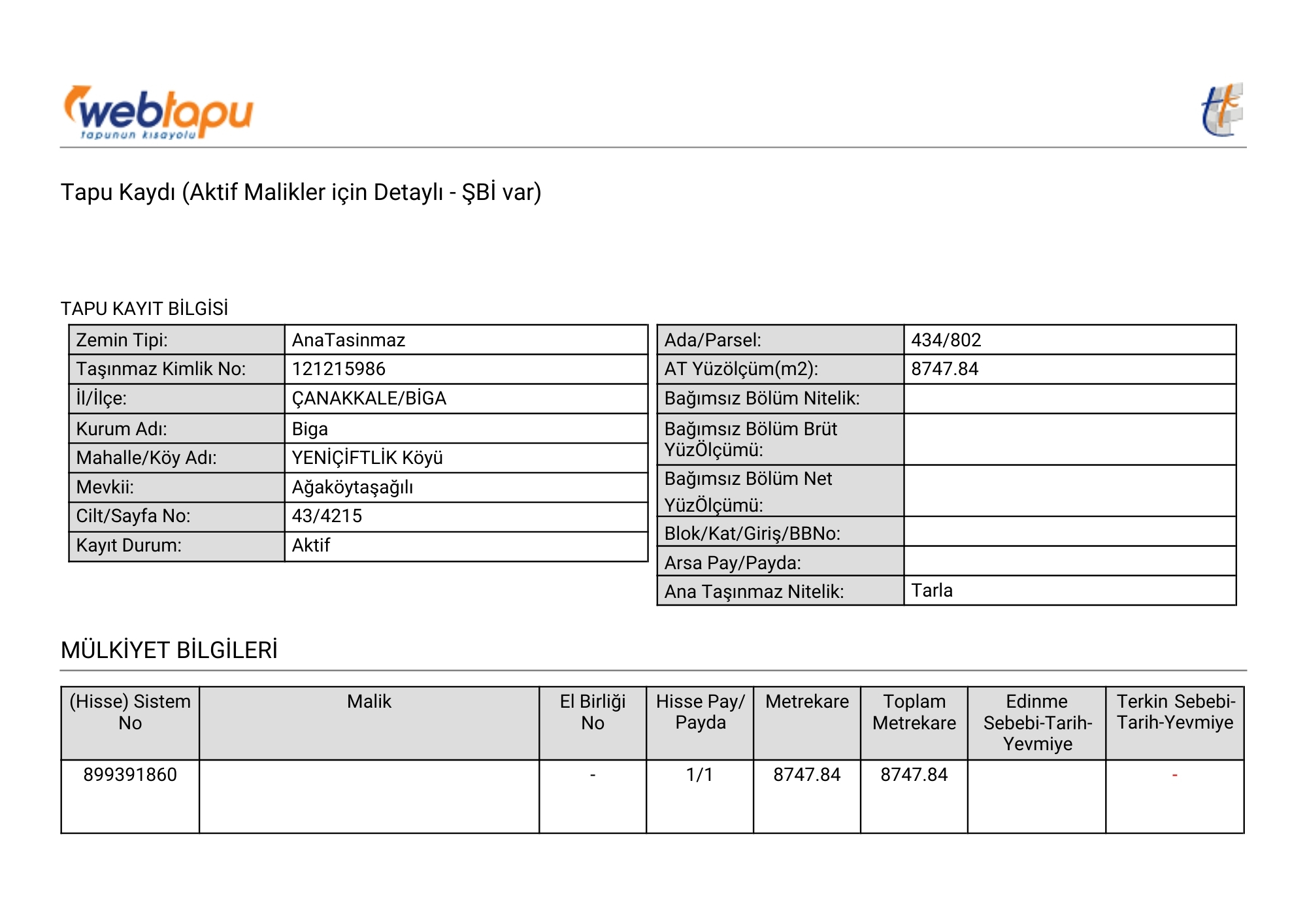 Tapu Durumu