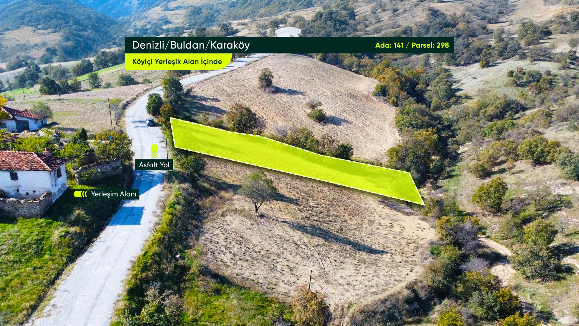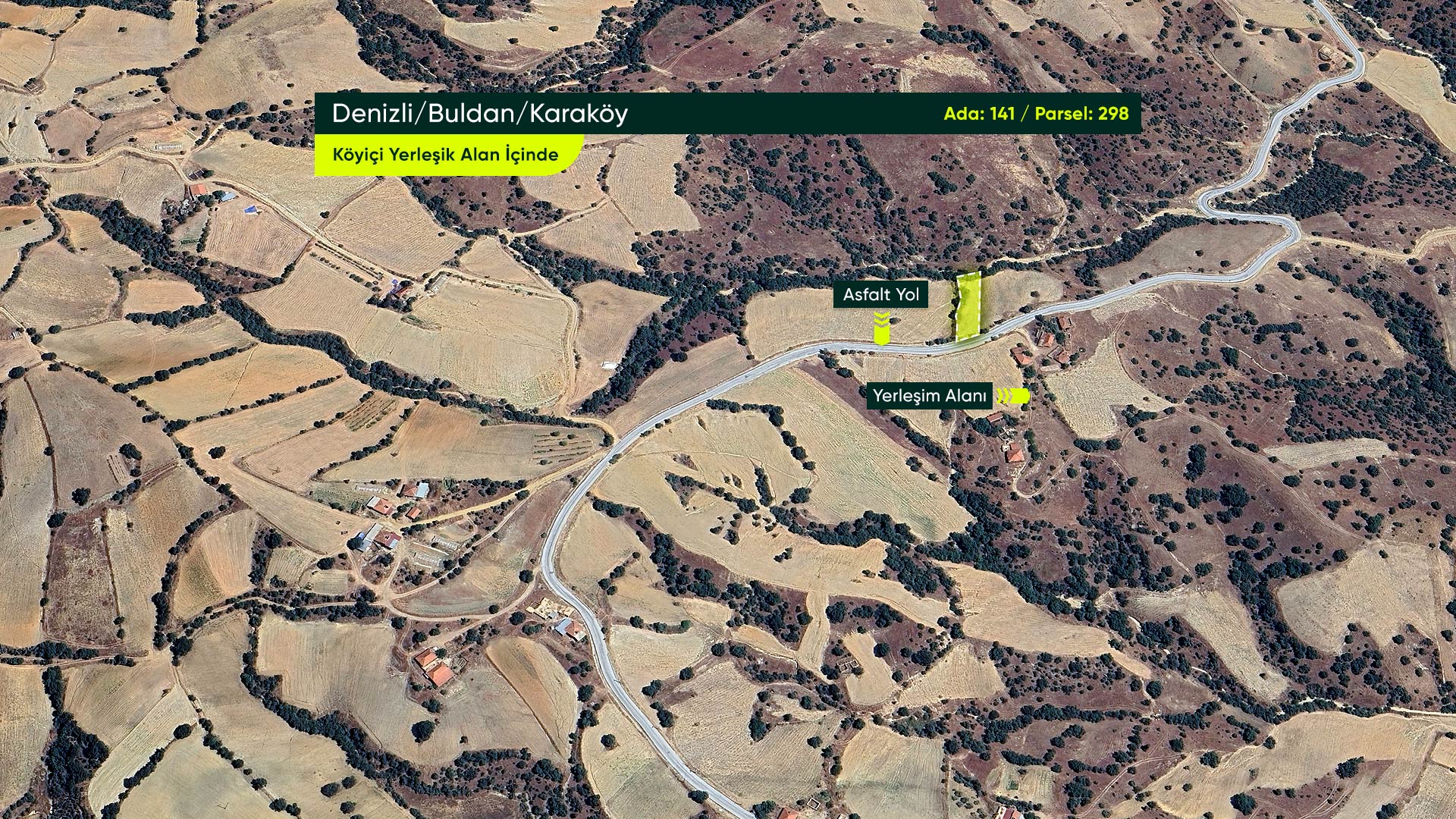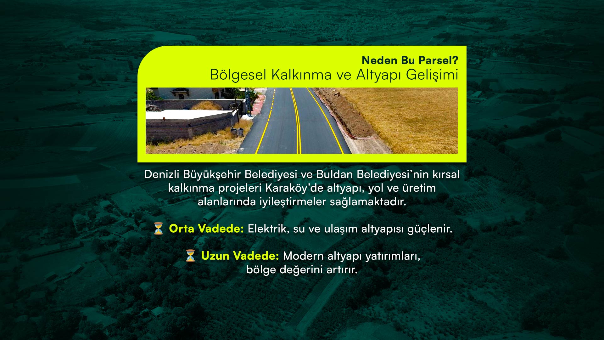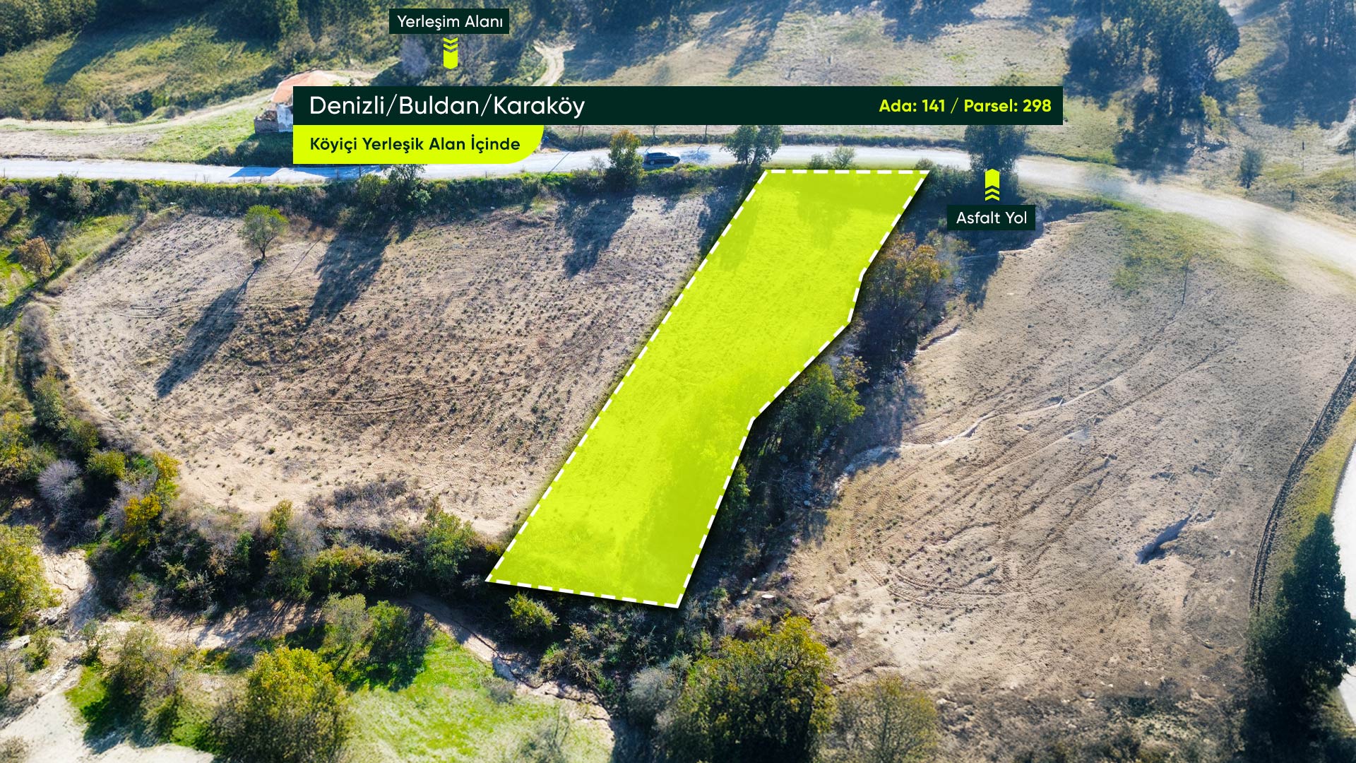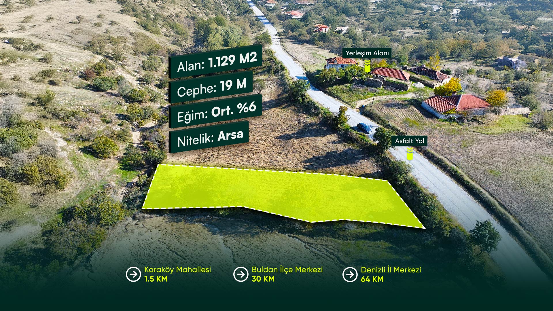 Denizli Buldan Karaköy Mahallesi’nde, Asfalt Yola Cephe, Yerleşime Yakın 1.129 m² Konut İmarlı Arsa