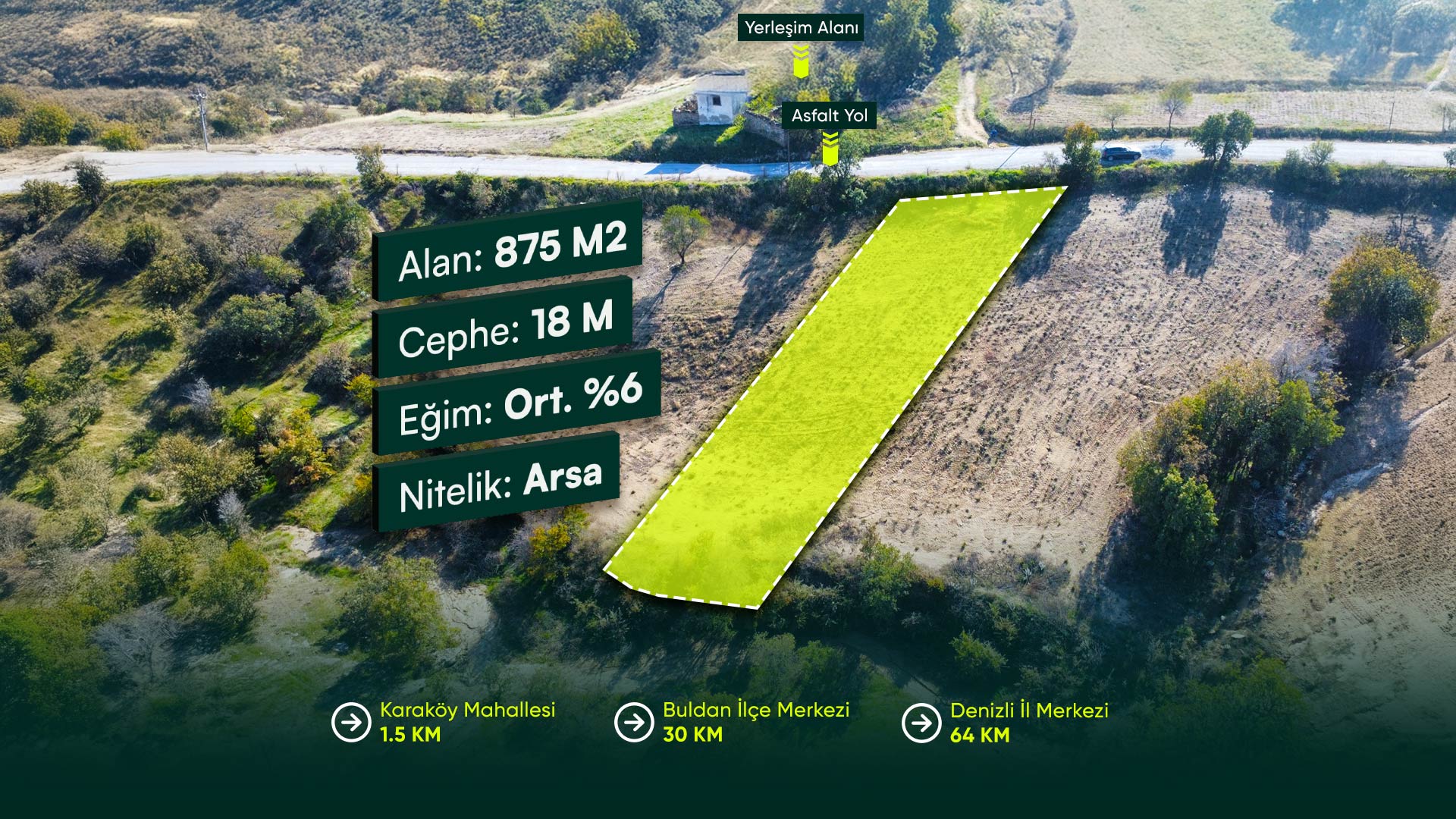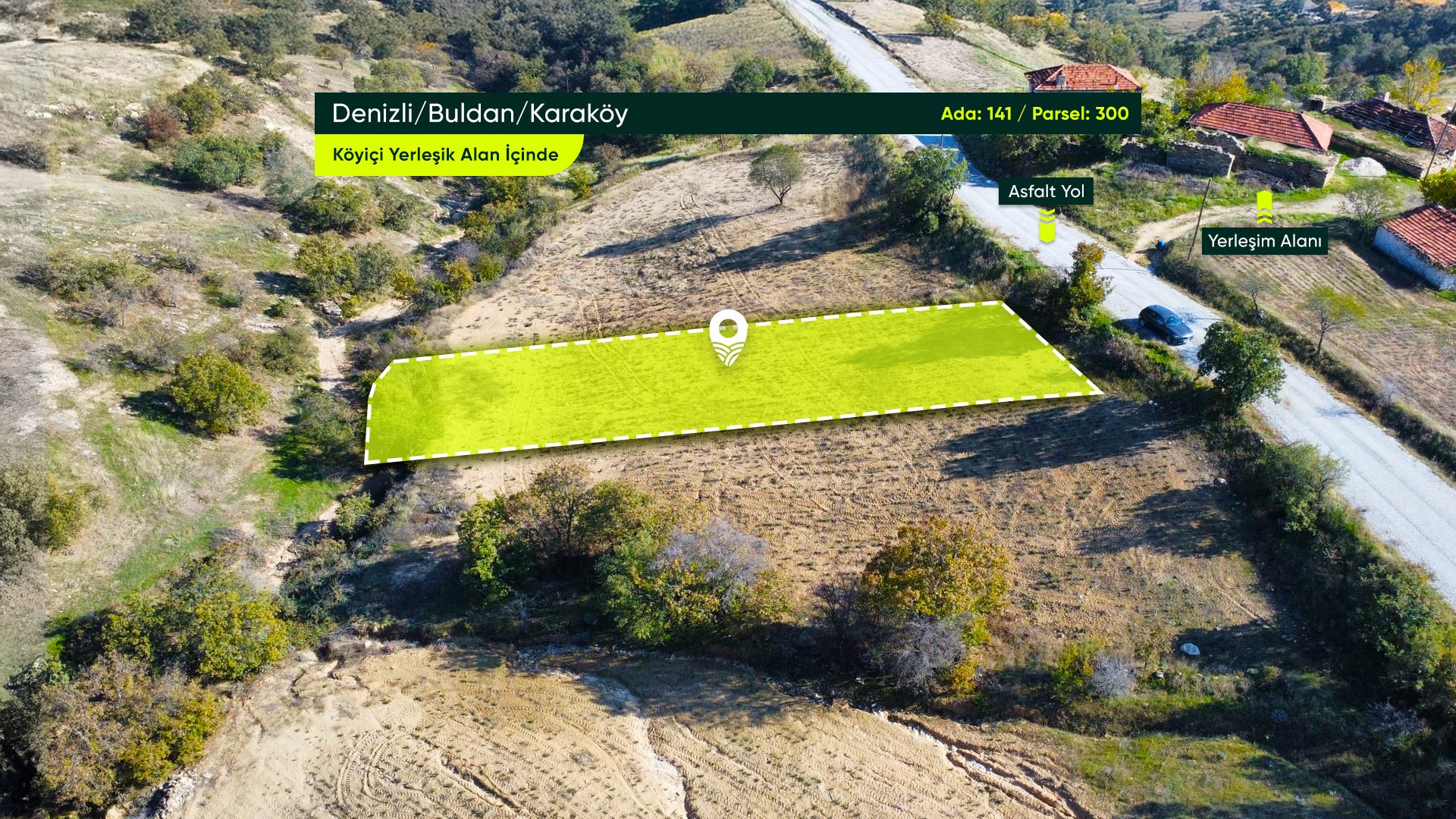 Denizli Buldan Karaköy Mahallesi’nde, Asfalt Yola Cephe, Yerleşime Yakın 875 m² Konut İmarlı Arsa