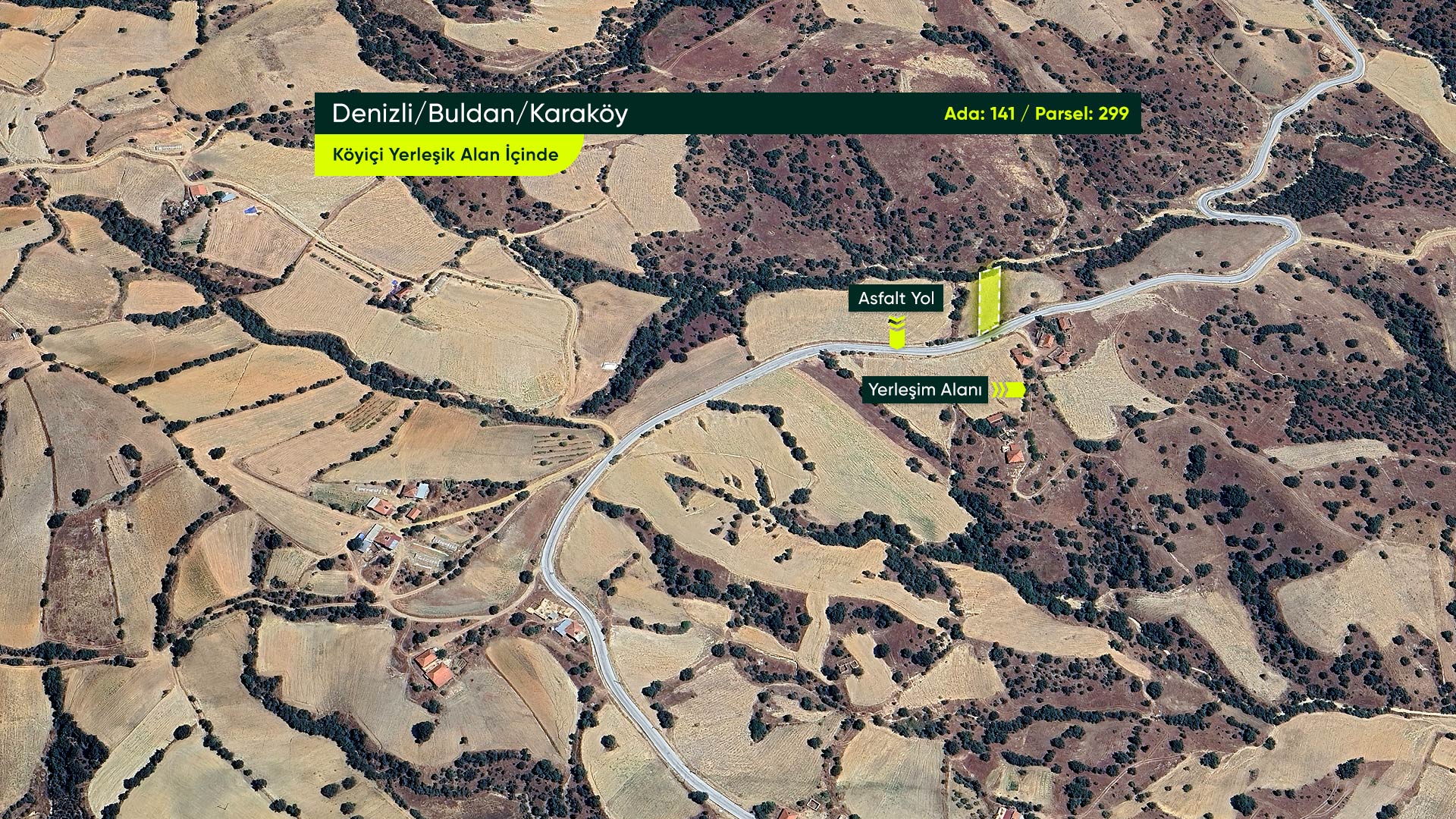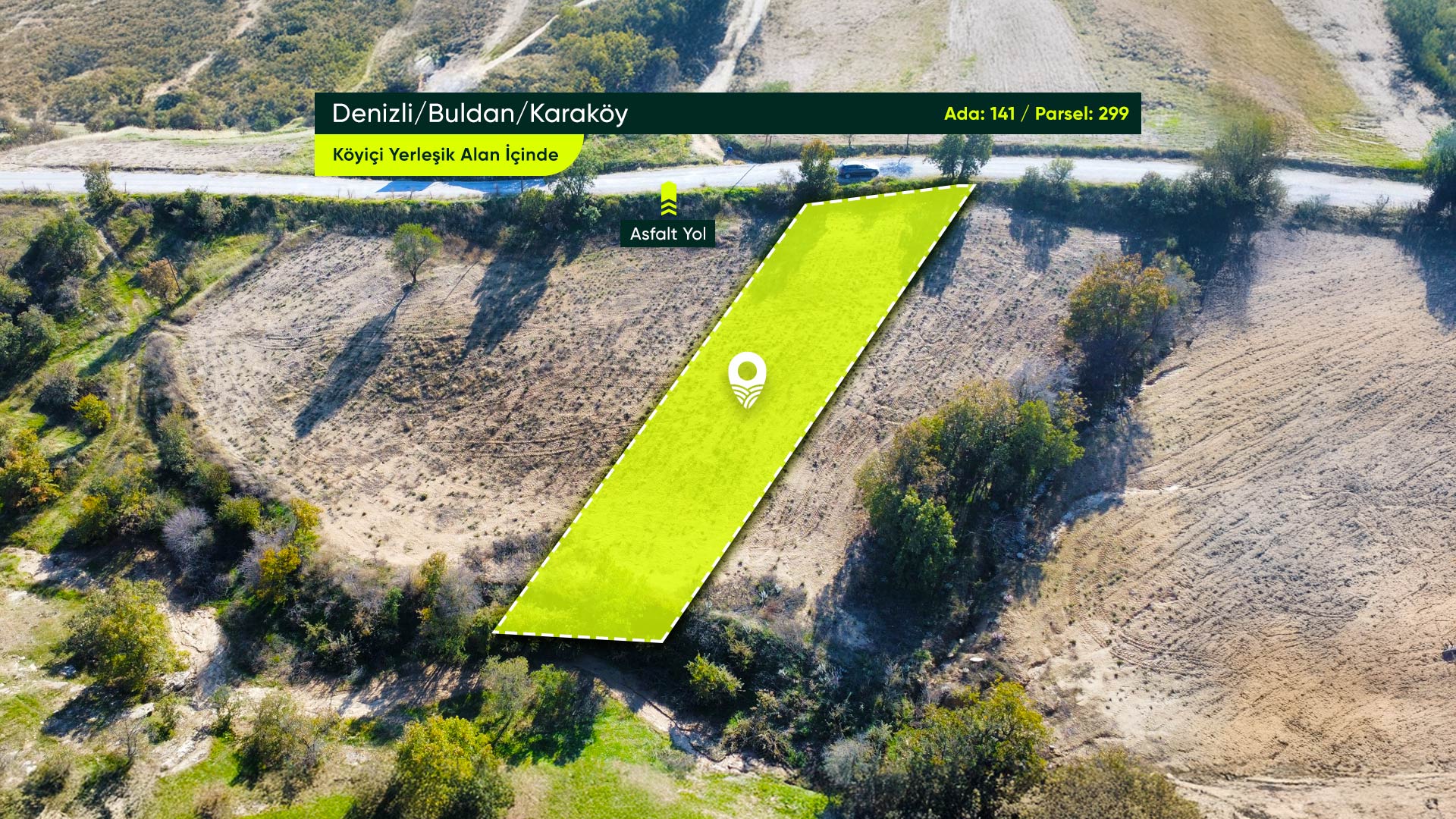 Denizli Buldan Karaköy Mahallesi’nde, Asfalt Yola Cephe, Yerleşime Yakın 949 m² Konut İmarlı Arsa