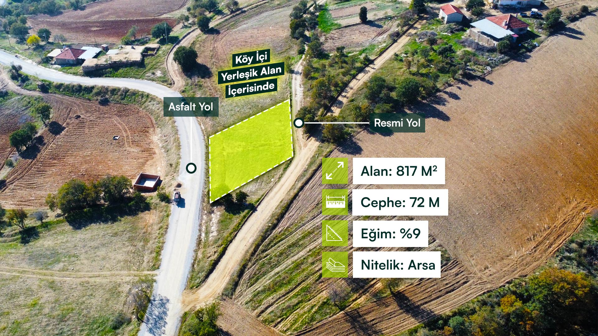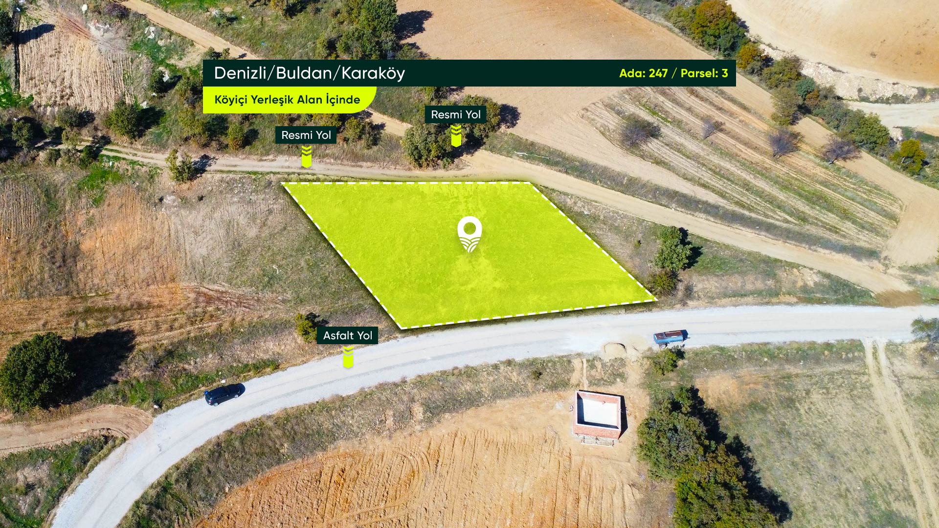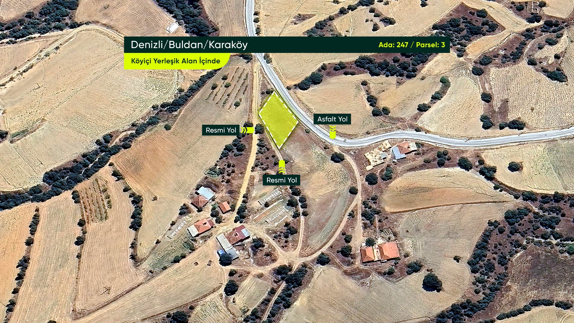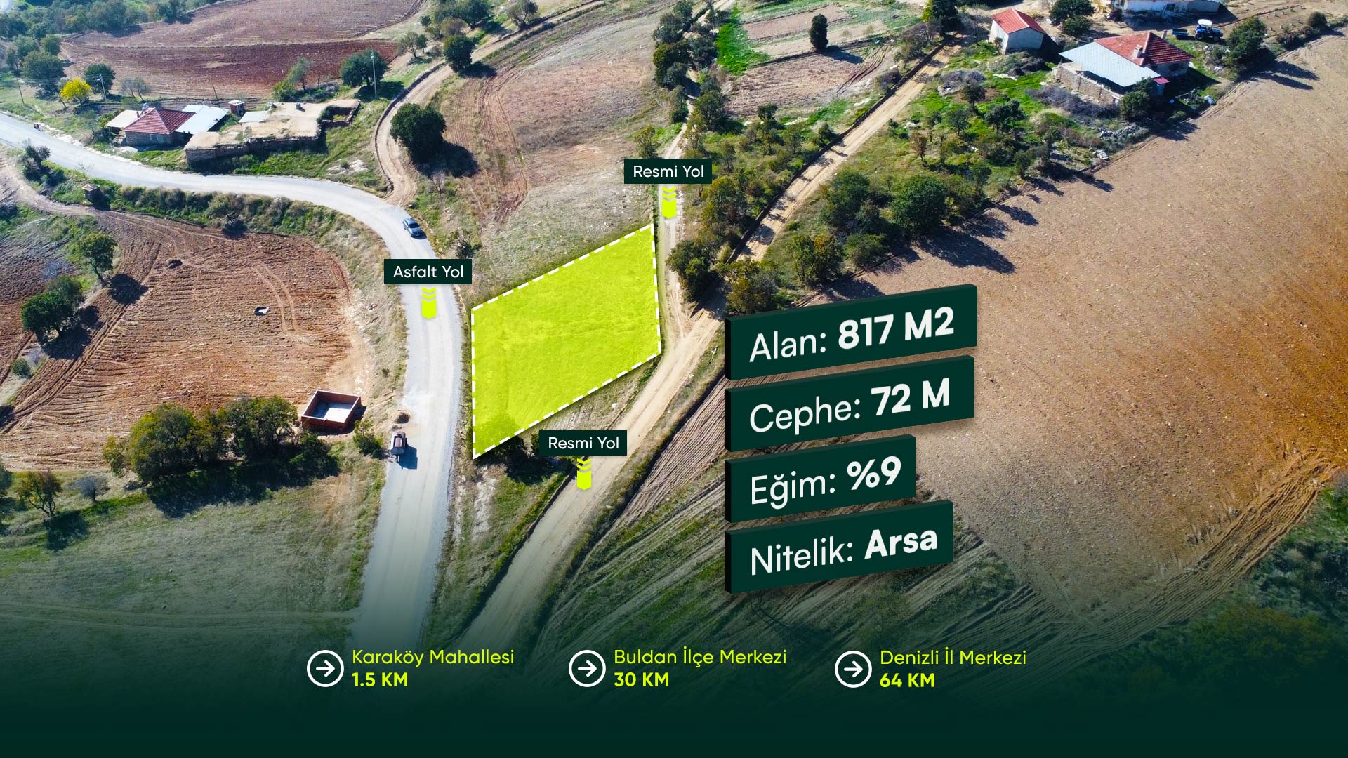 Denizli Buldan Karaköy Mahallesi’nde, Çift Cepheli, Yerleşime Yakın 817 m² Konut İmarlı Arsa