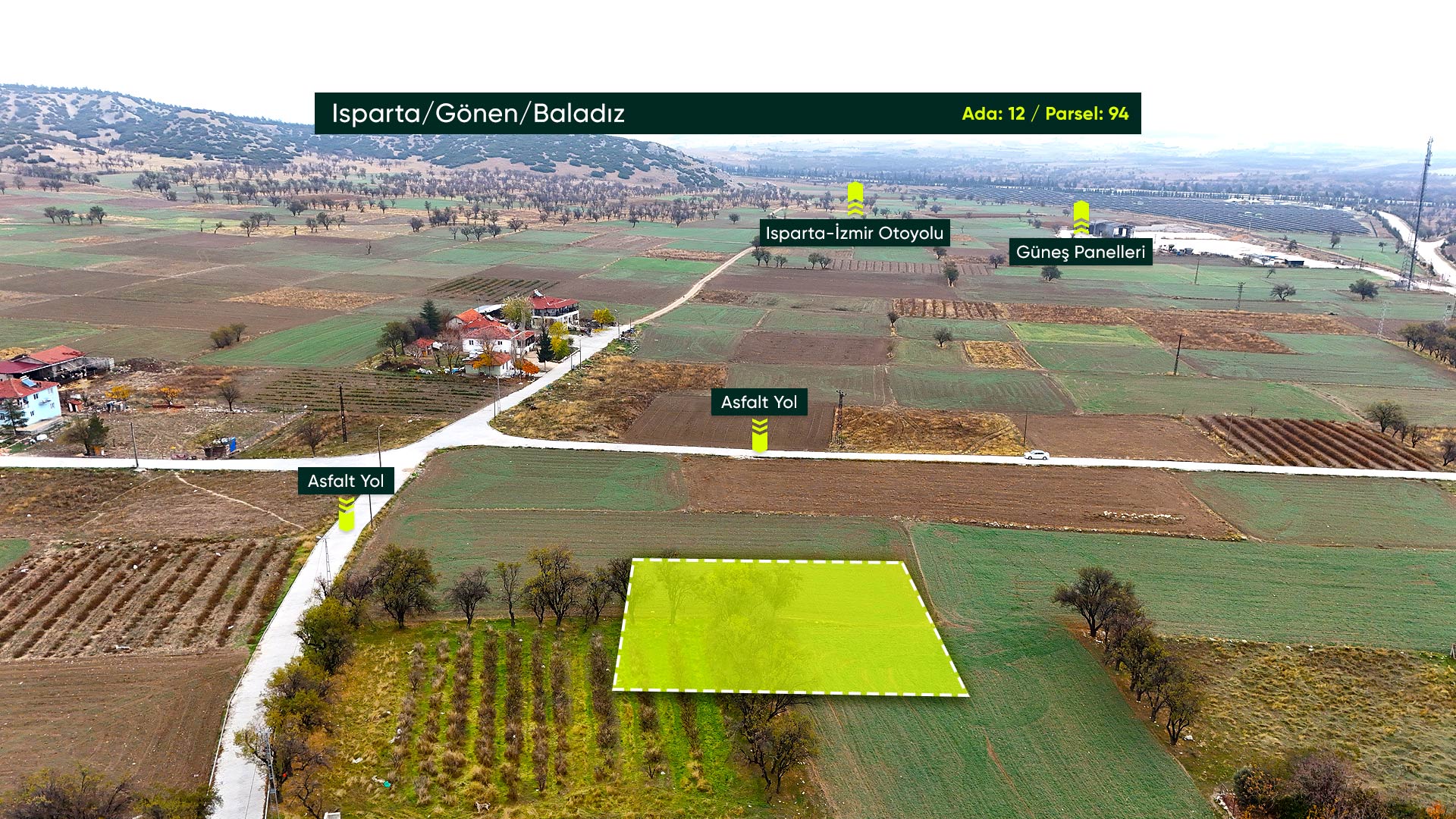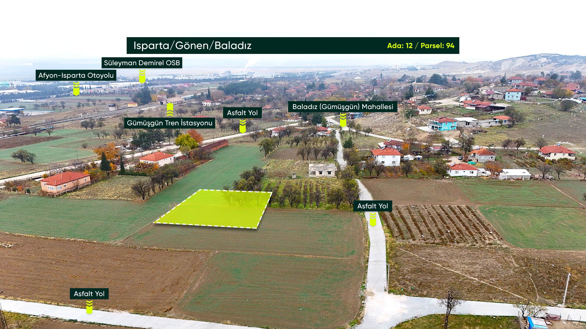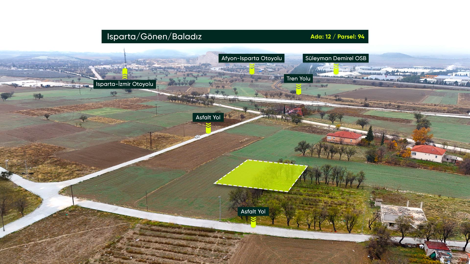 Isparta Gönen Baladız'da Sarı Alan İçinde, OSB ve Havalimanına Birkaç Dakika Uzaklıkta 1.379 m2 Tarla