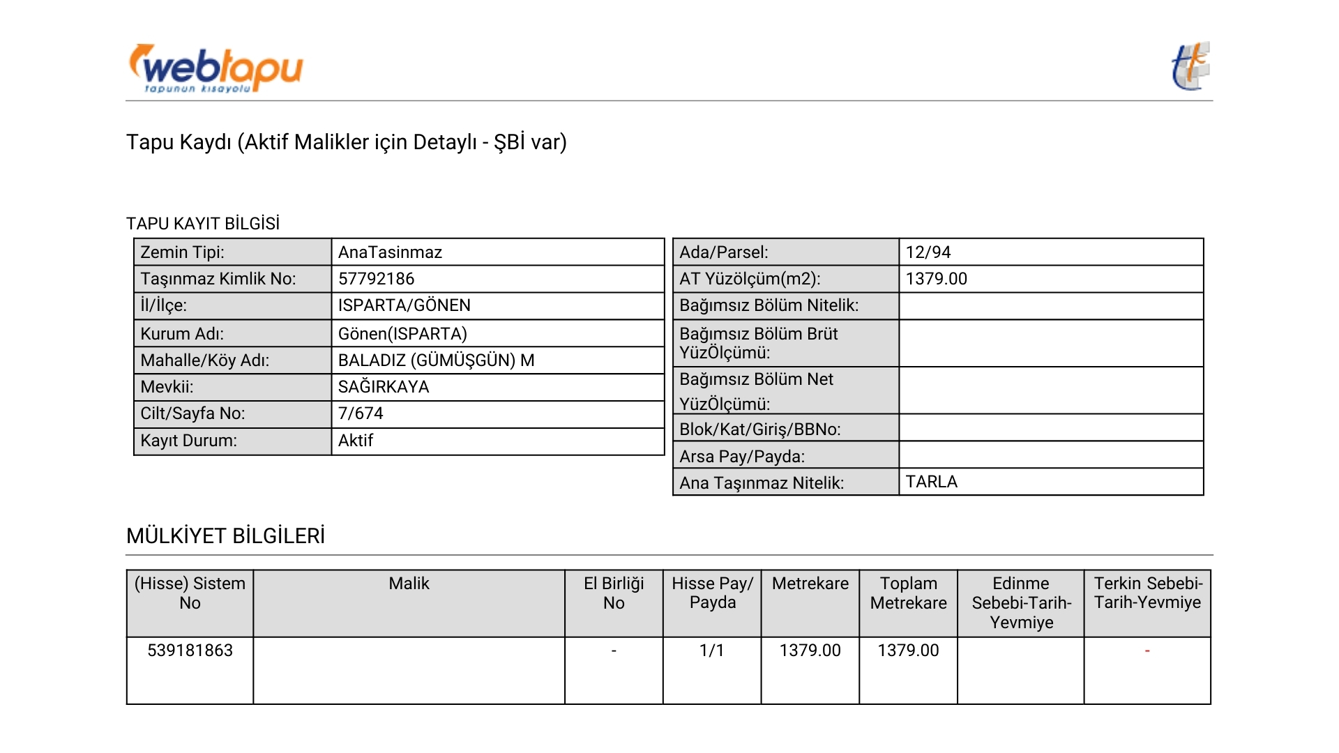 Tapu Durumu