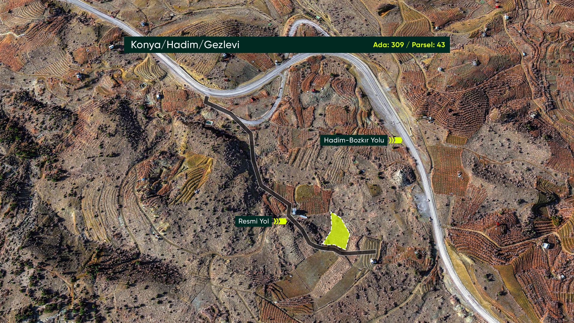 Konya Hadim Gezlevi’de, Bozkır-Hadim Kara Yoluna 180 Metre, 2.720 m² Tarla