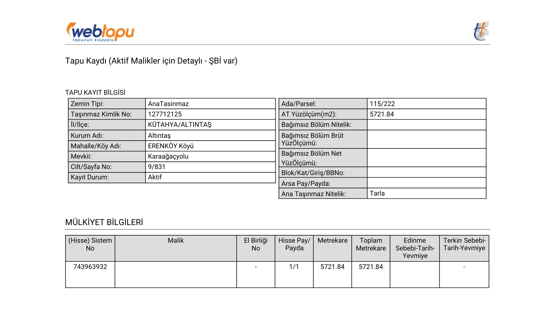 Tapu Durumu