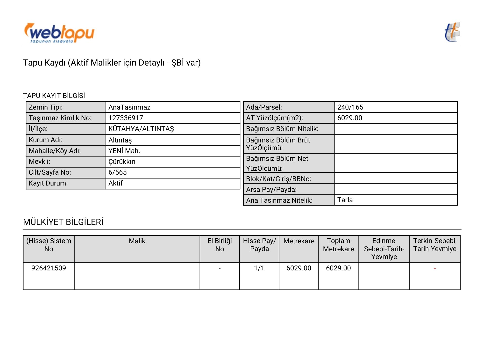 Tapu Durumu