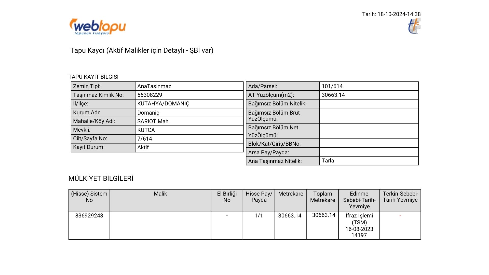 Kütahya Domaniç Sarıot'da Yerleşime 200 Metre Uzaklıkta 30.663 m2 Tarla Fırsatı