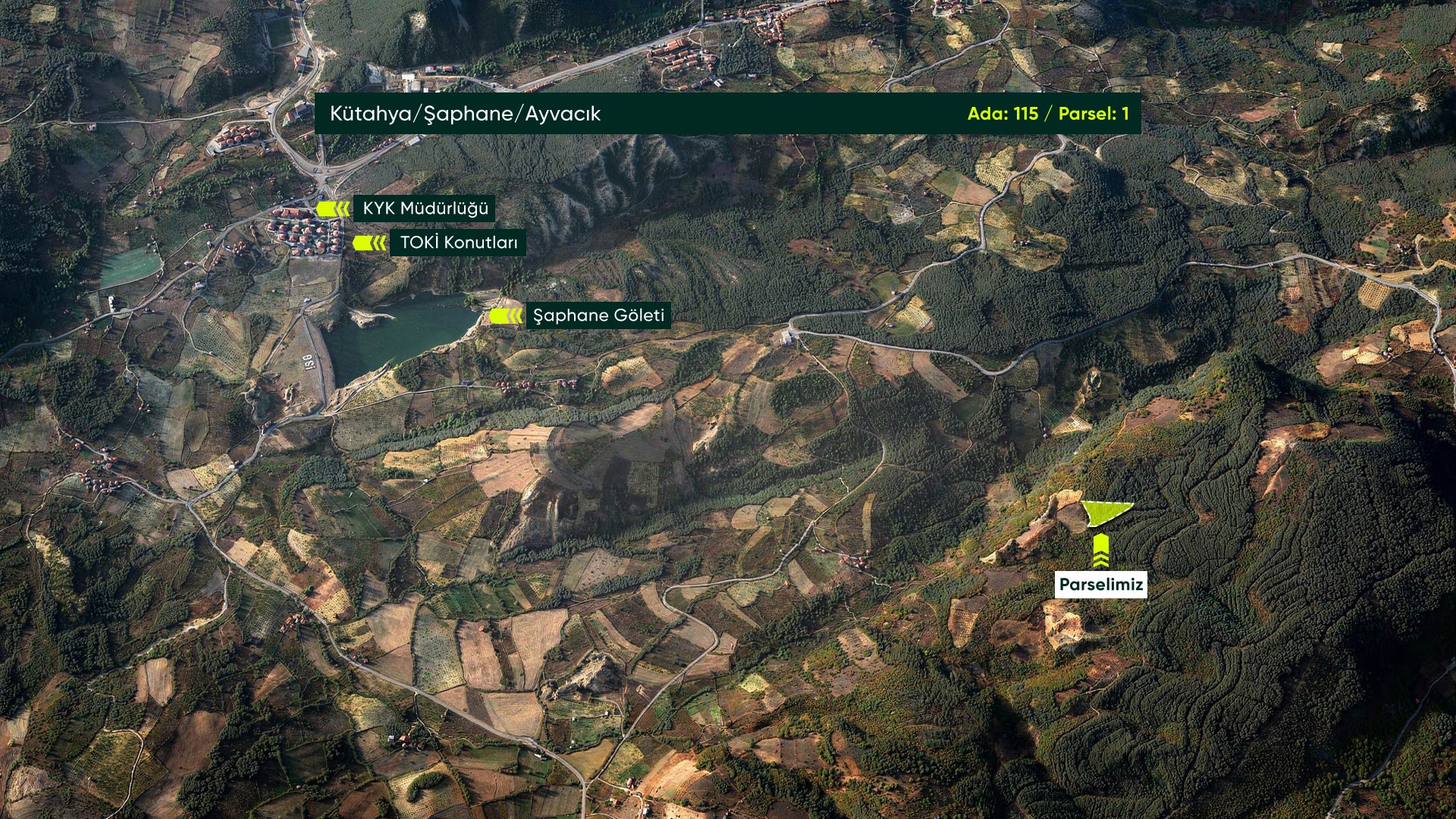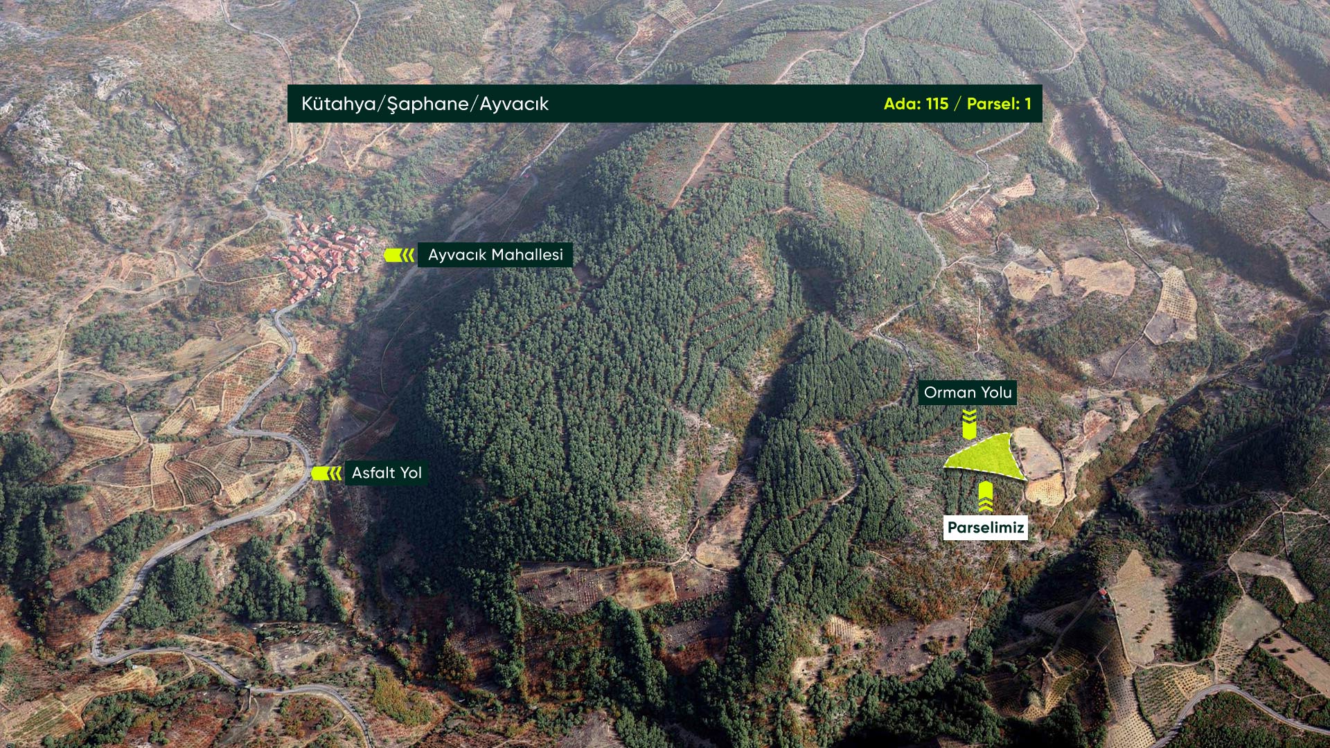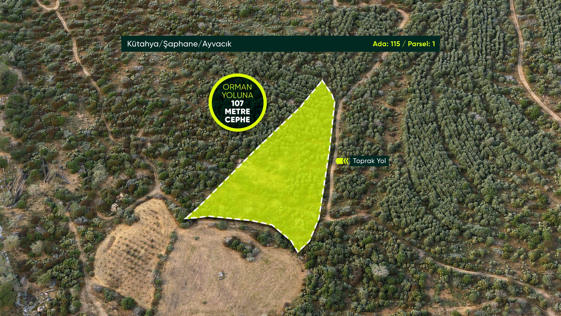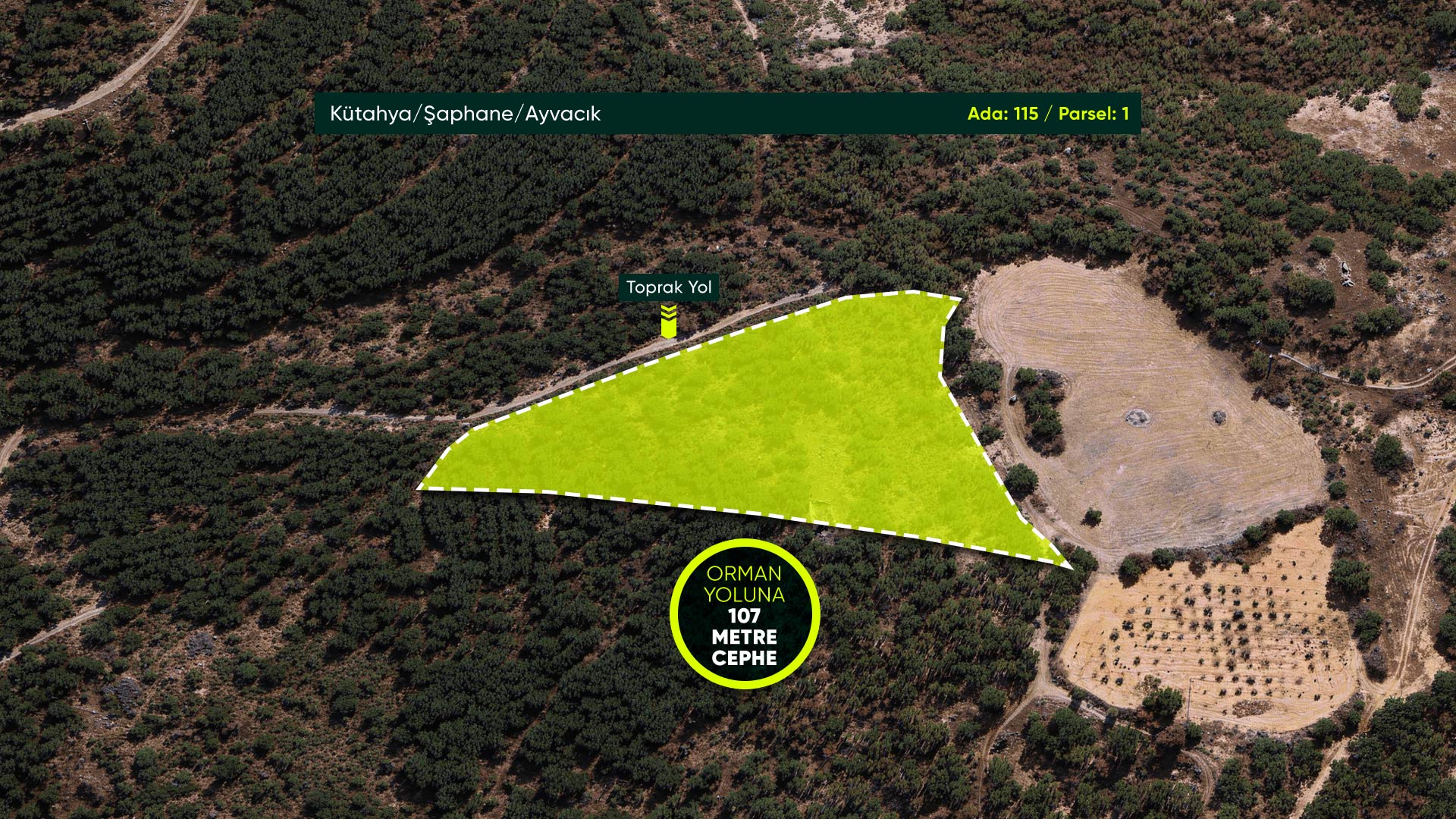 Kütahya Şaphane Ayvacık’ta Devlet Ormanına Cephe, İlçe Merkezine Yakın 6.918 m² Yatırımlık Tarla