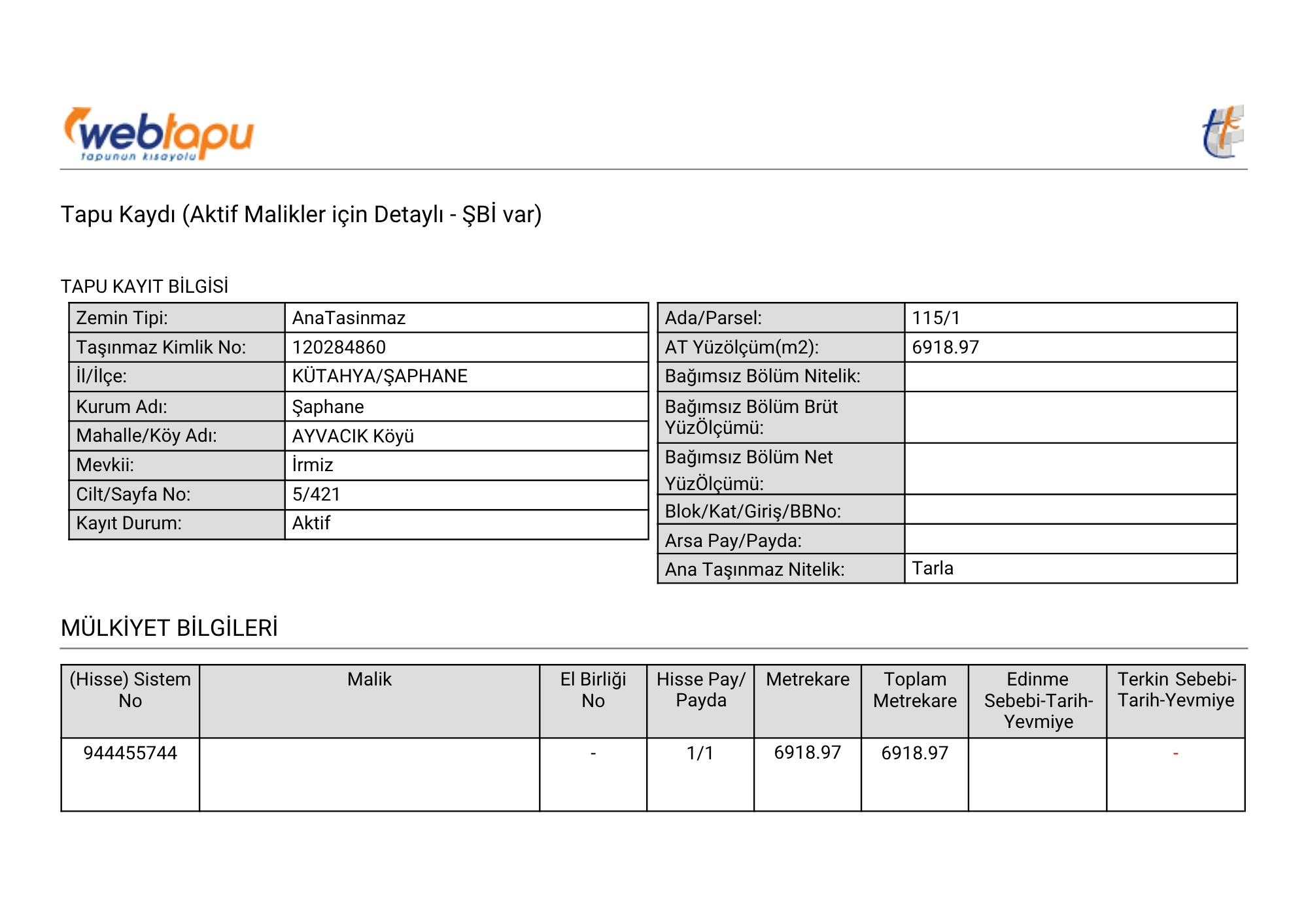 Tapu Durumu