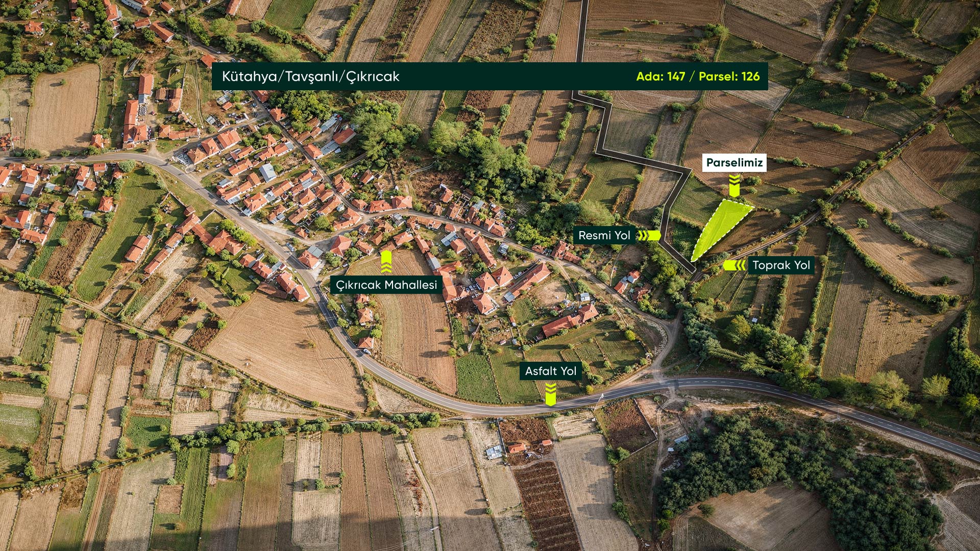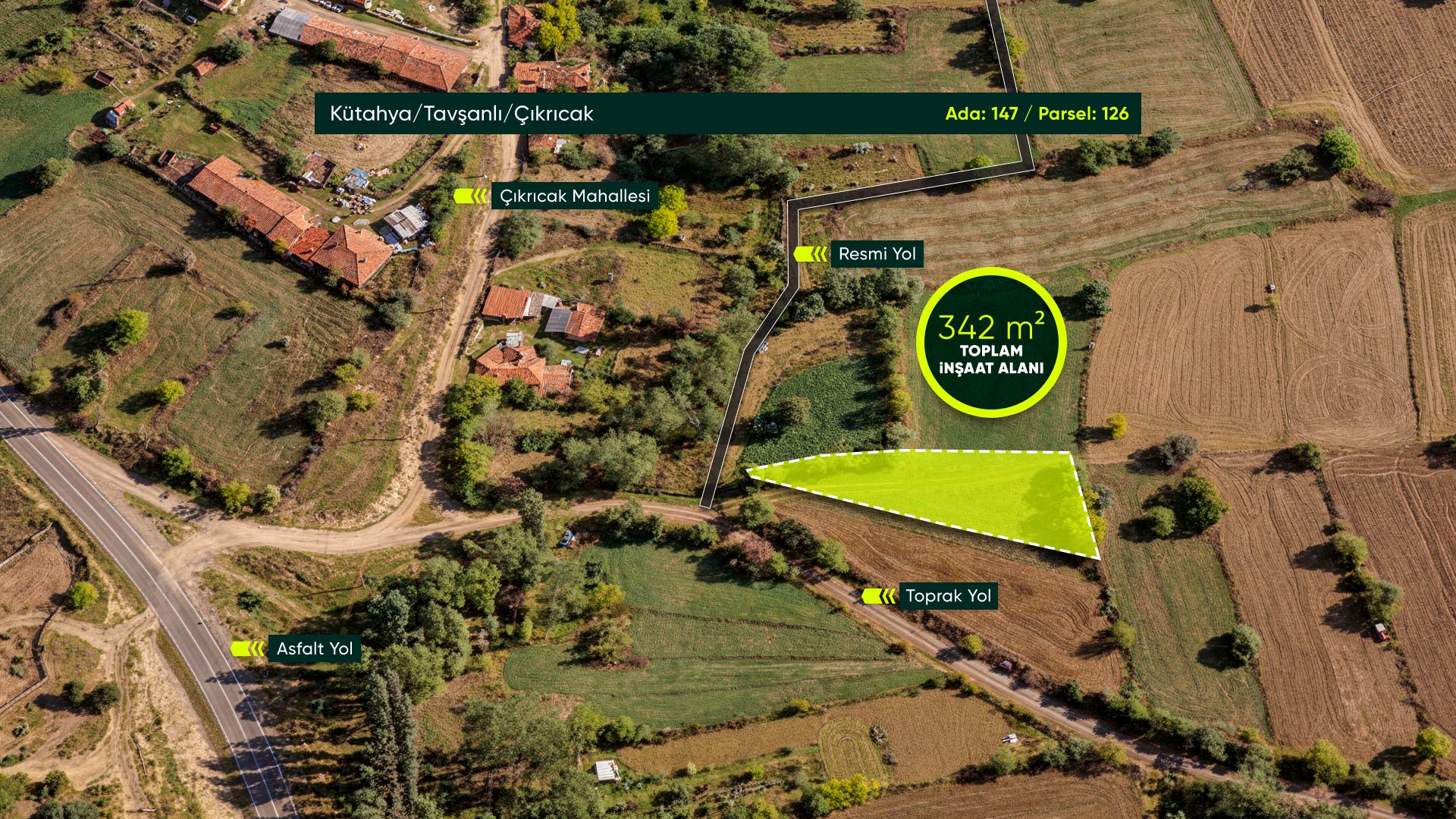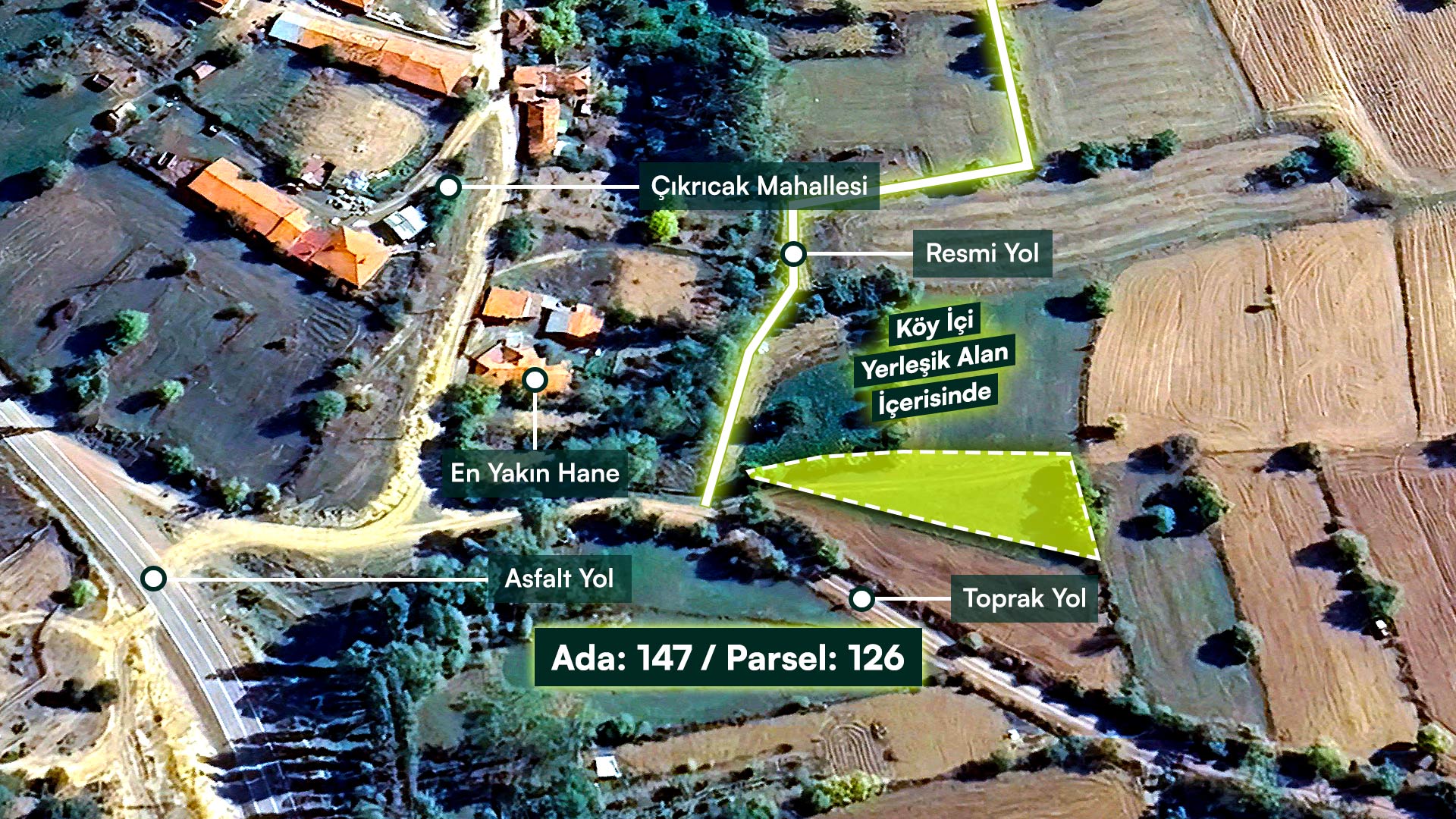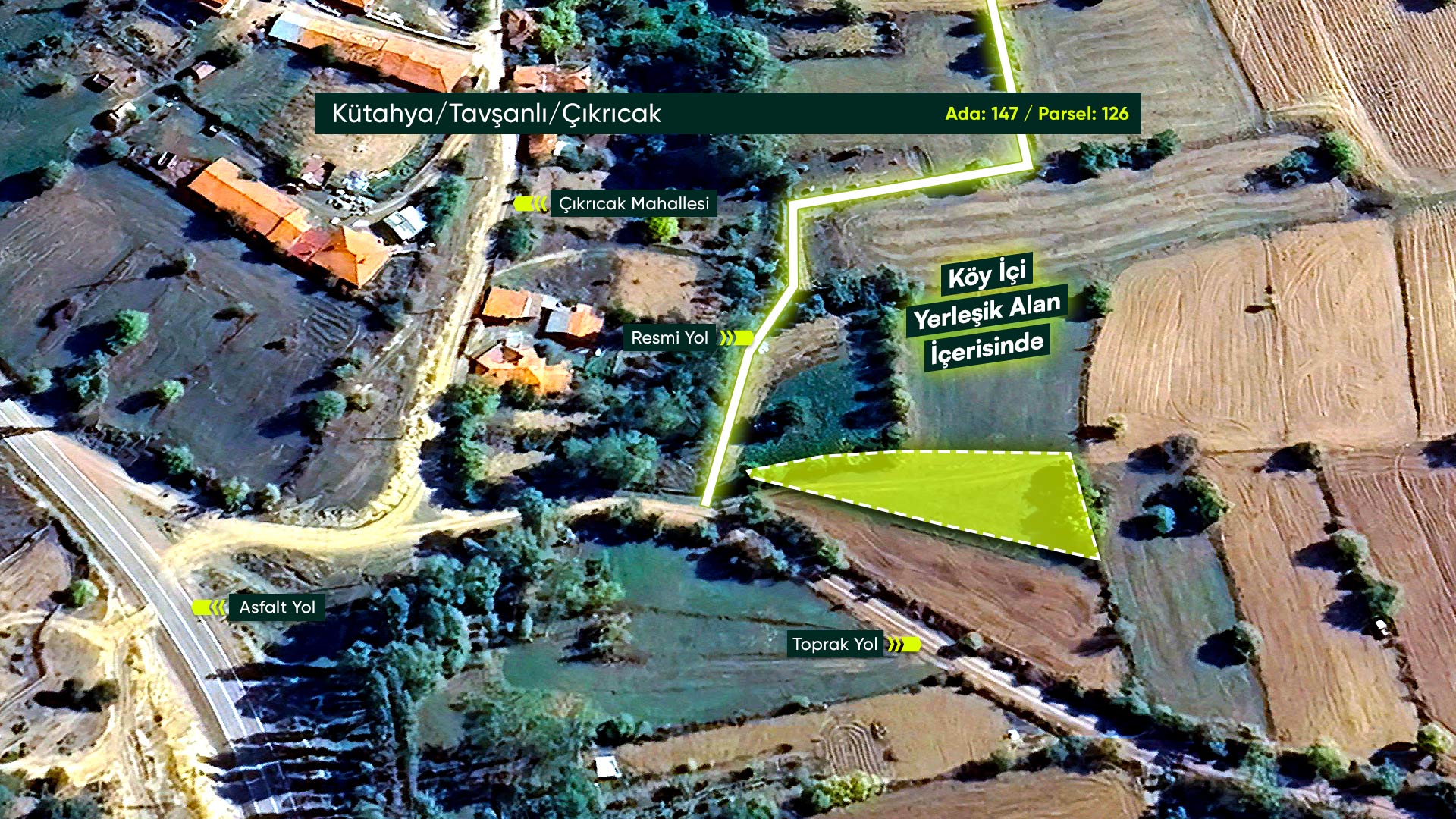 Kütahya Tavşanlı Çıkrıcak’ta Köy Yerleşik Alanı İçinde, Yerleşime 60 Metre Mesafede 856 m² Tarla