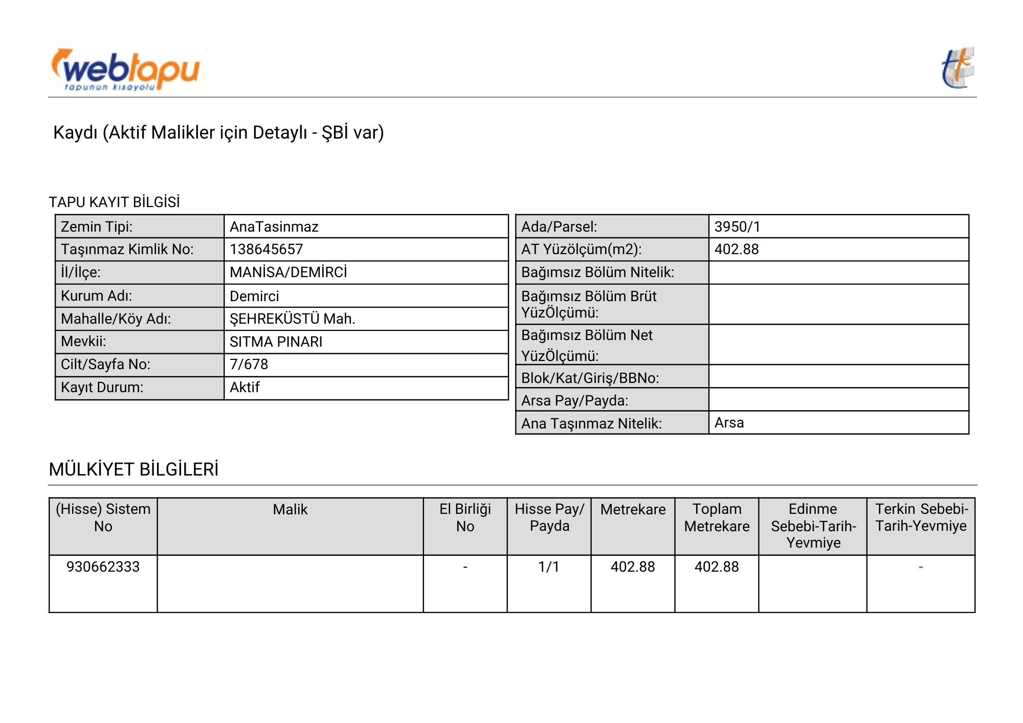 Tapu Durumu