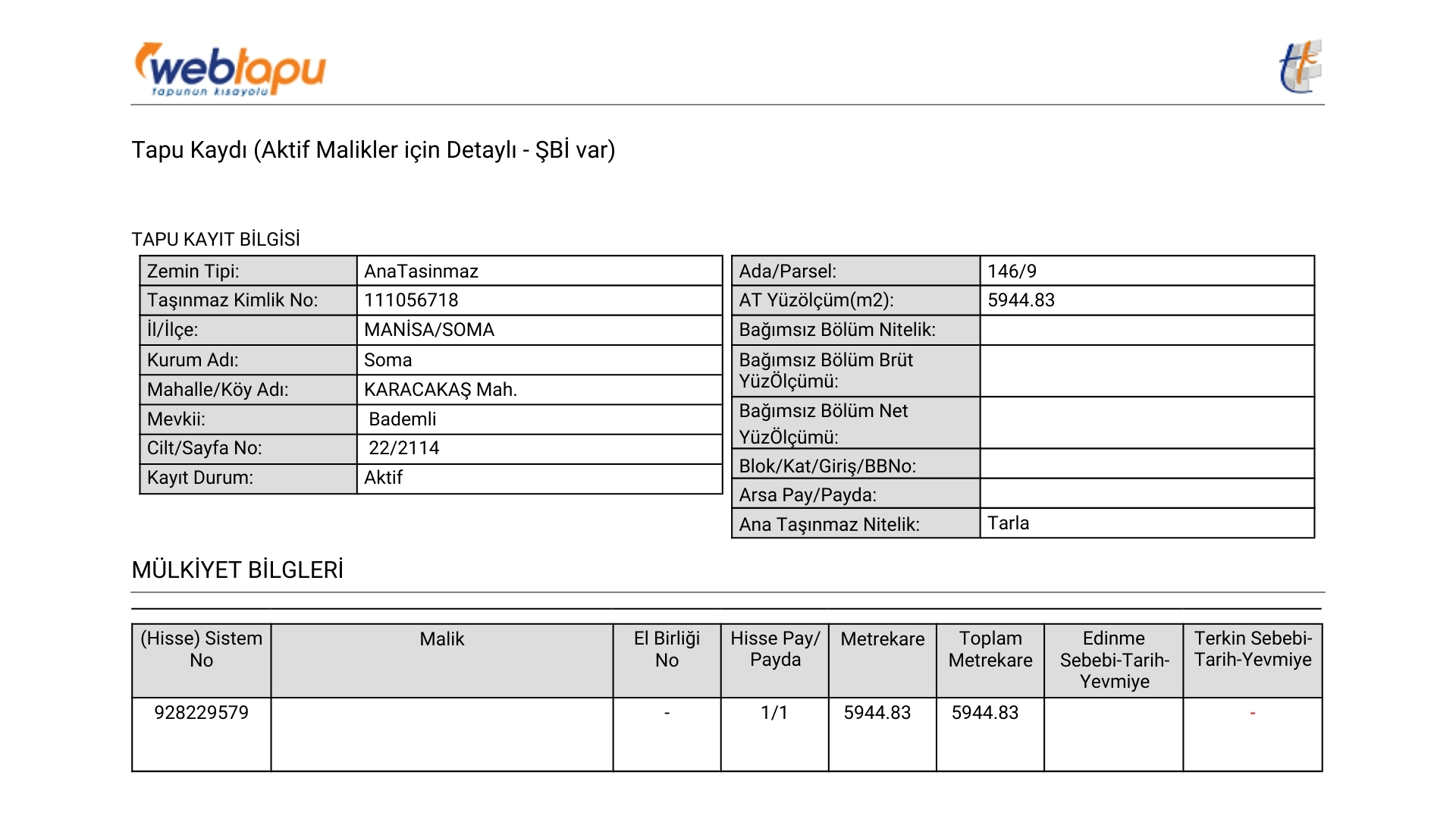 Tapu Durumu
