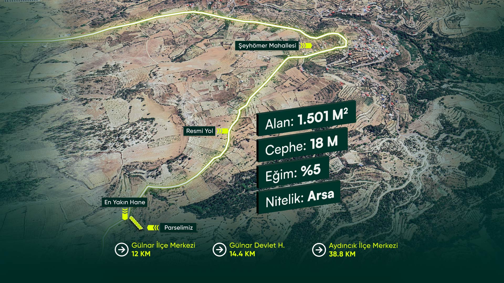 Mersin Gülnar Şeyhömer’de Yerleşik Alan İçerisinde, 3 Adet Müstakil Ev Yapmaya Uygun 1.501 m2 İmarlı Arsa
