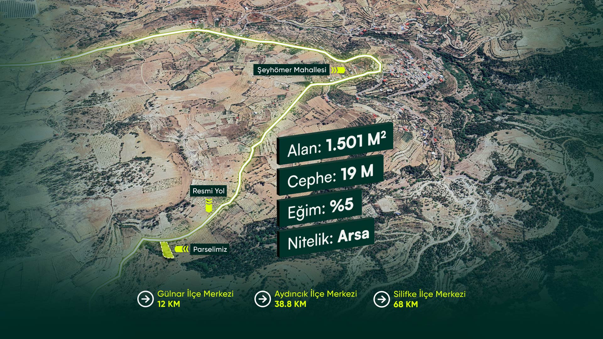 Mersin Gülnar Şeyhömer’de Yerleşik Alan İçerisinde, 3 Adet Müstakil Ev Yapmaya Uygun 1.501 m2 İmarlı Arsa