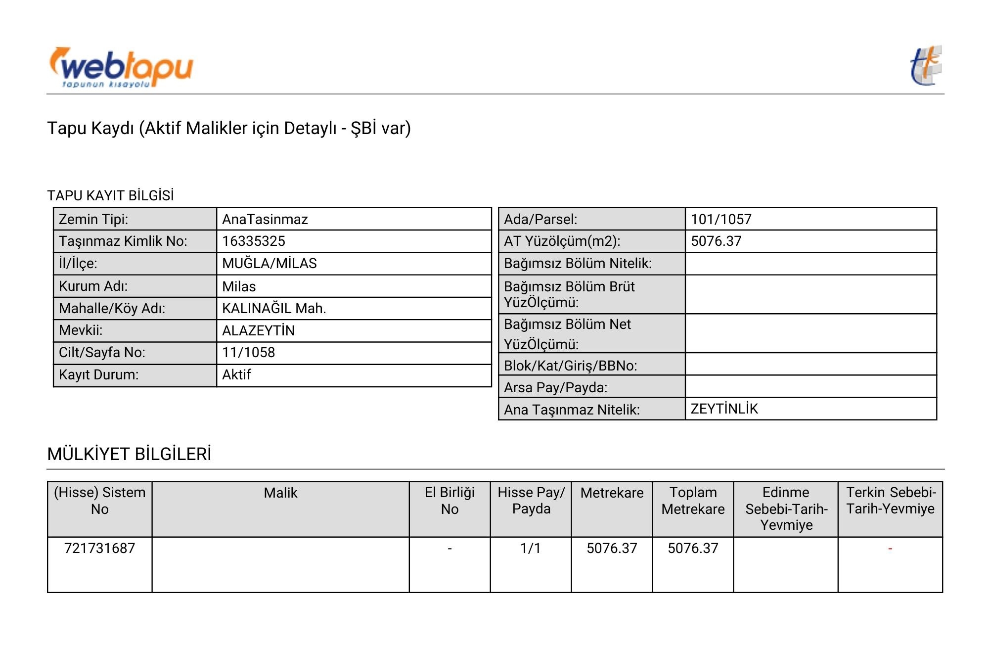 Muğla Milas Kalınağıl'da, Milas İlçe Merkezine Yakın, 5.076 m2 Zeytinlik