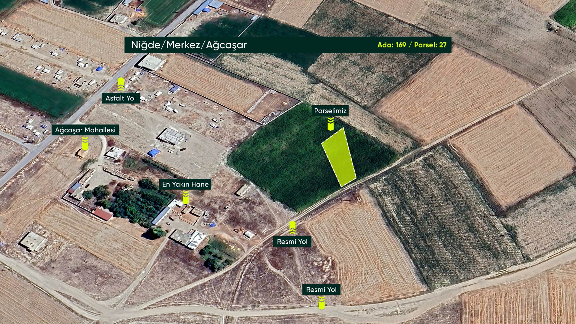 Niğde Merkez Ağcaşar'da Resmi Yola Cepheli, Konut İmarlı 1.047 m² Arsa