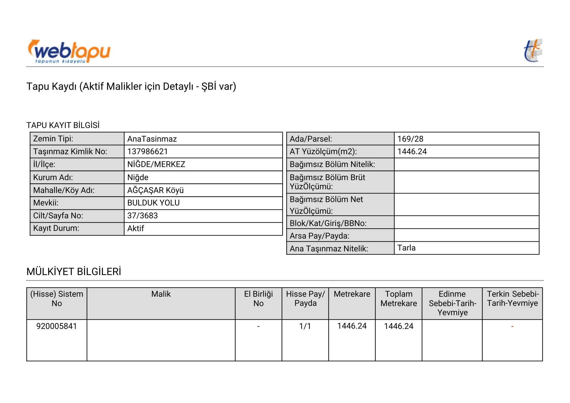 Tapu Durumu