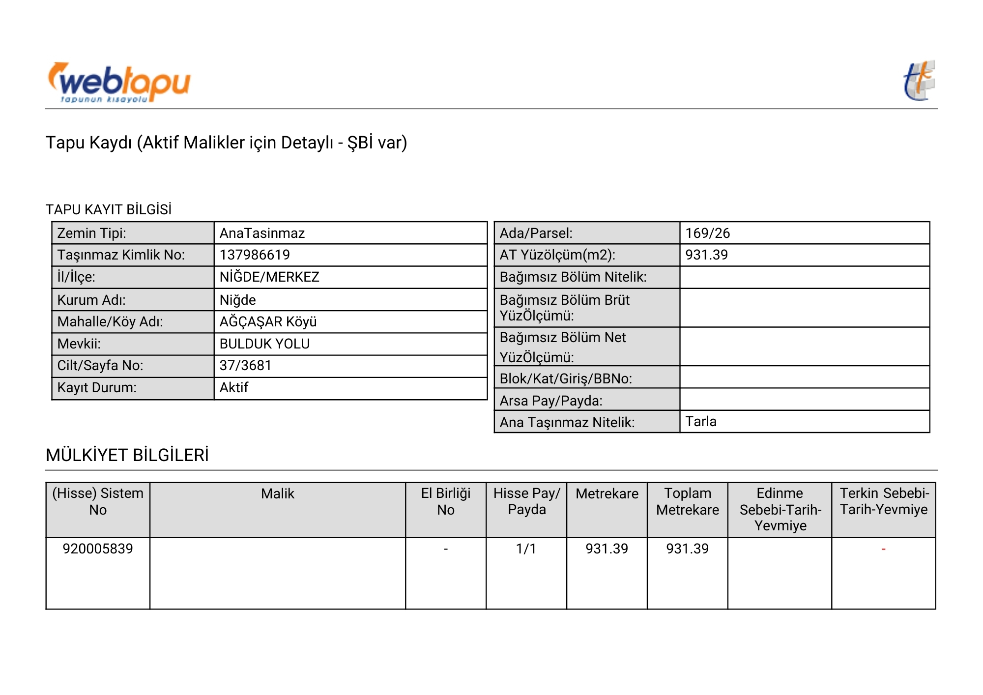 Niğde Merkez Ağcaşar'da Resmi Yola Cepheli, Konut İmarlı 931 m² Arsa