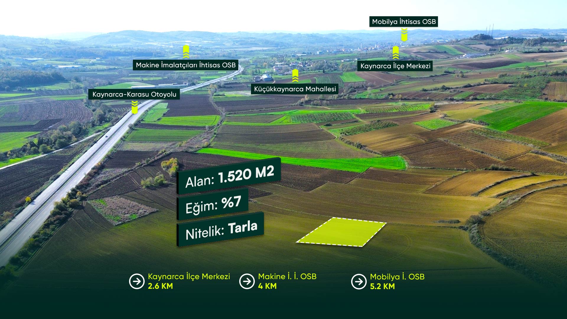 Sakarya Kaynarca Dudu’da Ana Yolun Dibinde, İlçe Merkezine Yakın 1.520 m² Tarla