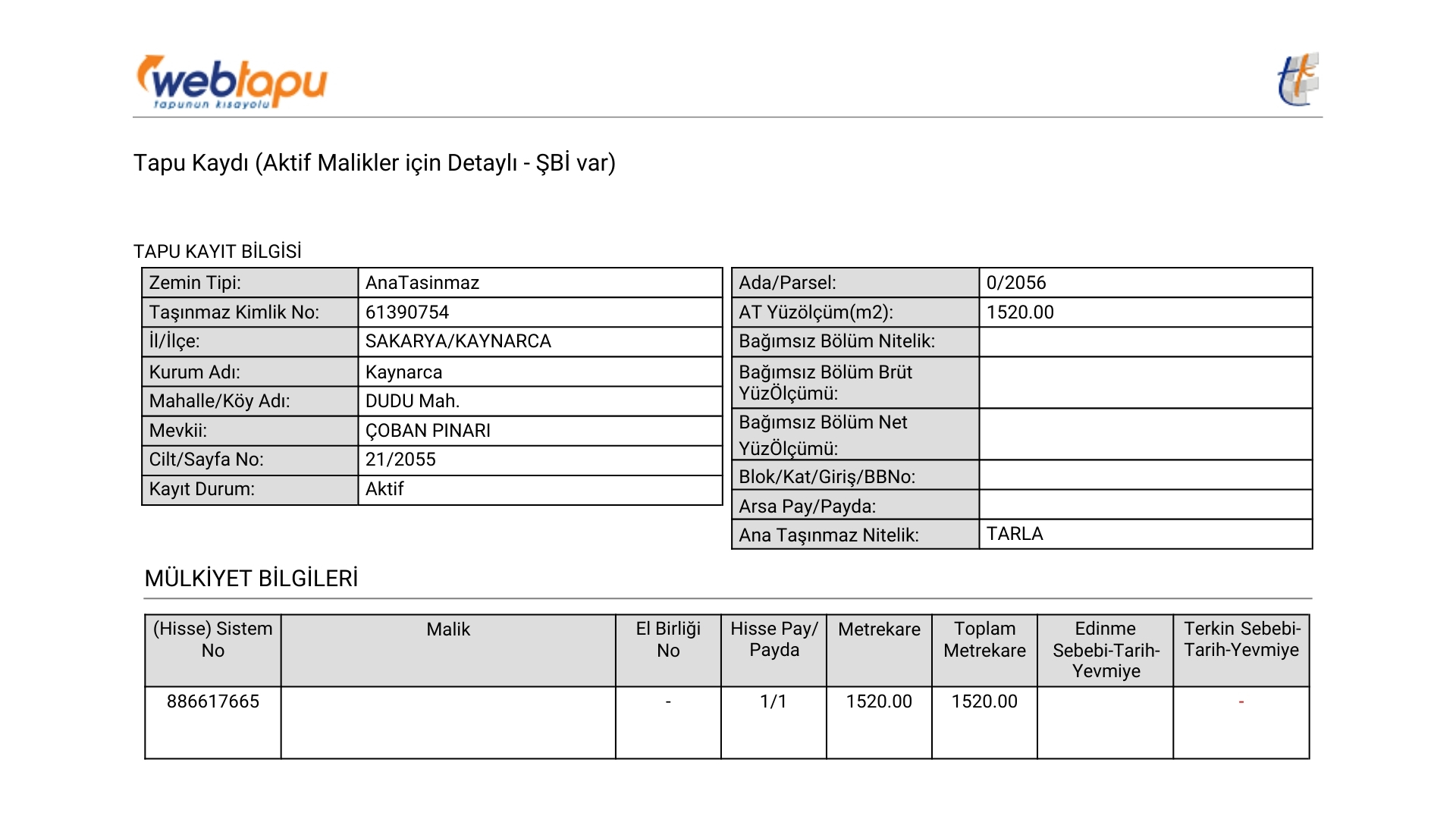 Tapu Durumu