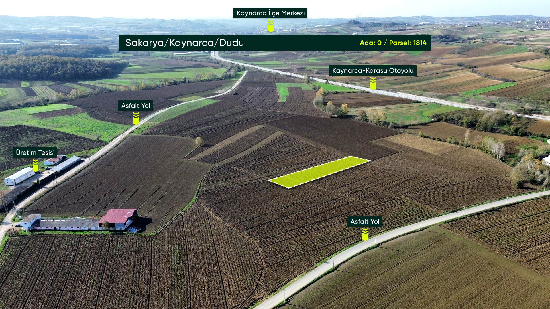 Sakarya Kaynarca Dudu’da Ana Yolun Dibinde, İlçe Merkezine Yakın 1.600 m² Tarla