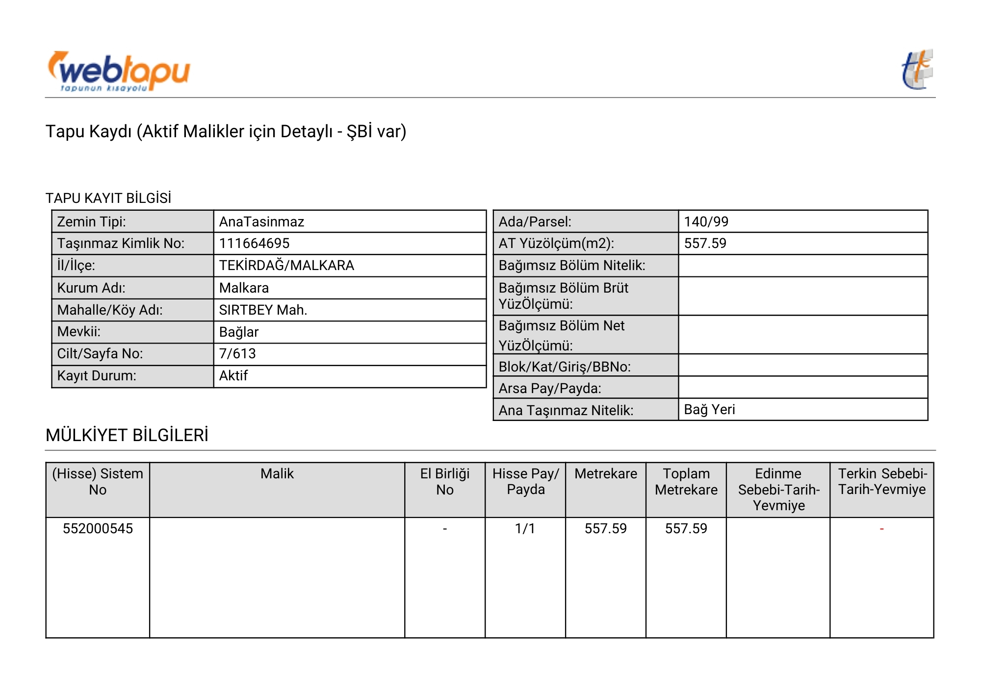 Tapu Durumu