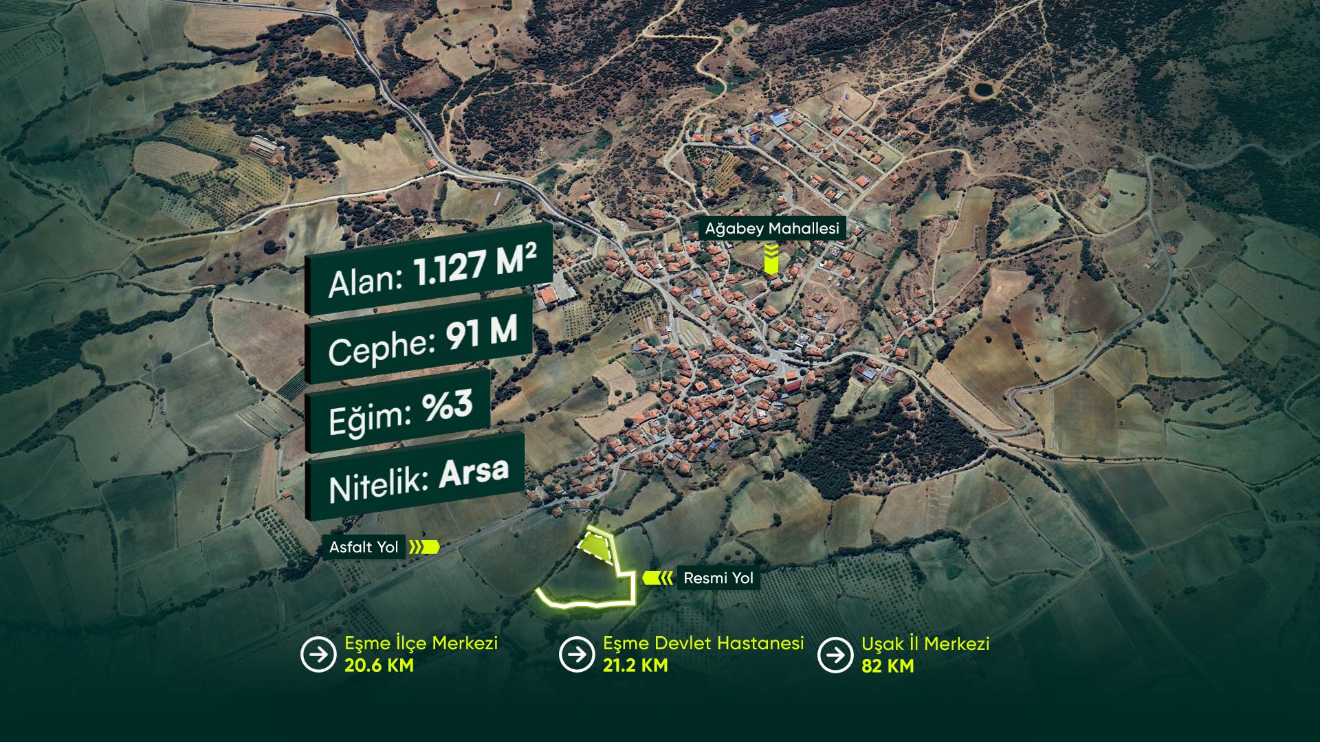 Uşak Eşme Ağabey’de 2 Kat İmarlı, Villa Yapımına Uygun 1.127 m2 Arsa