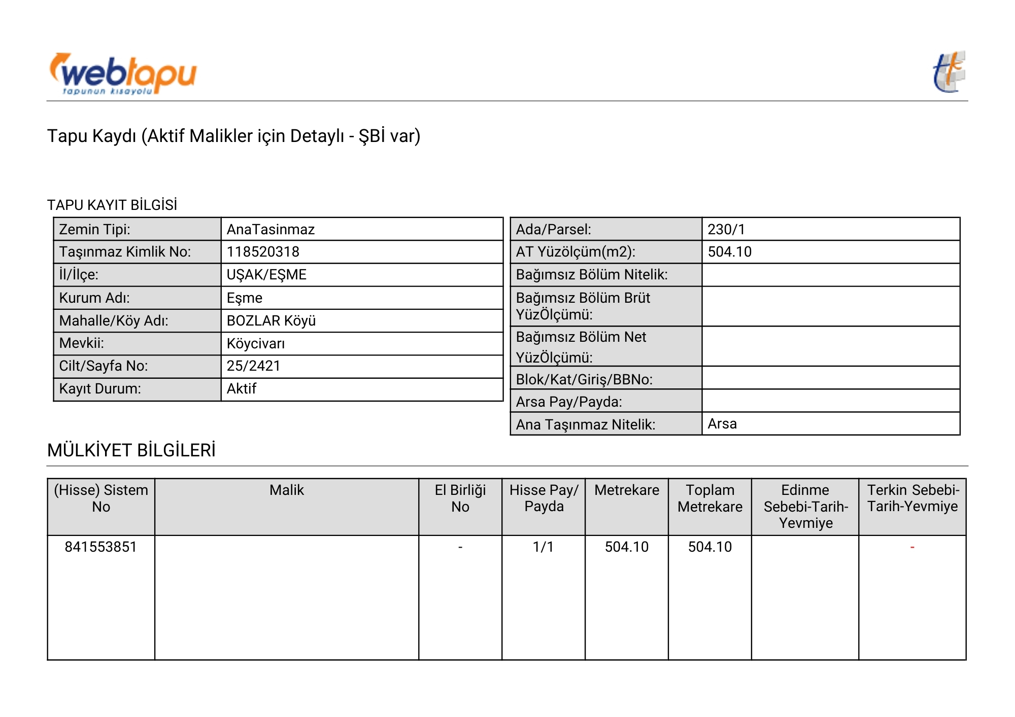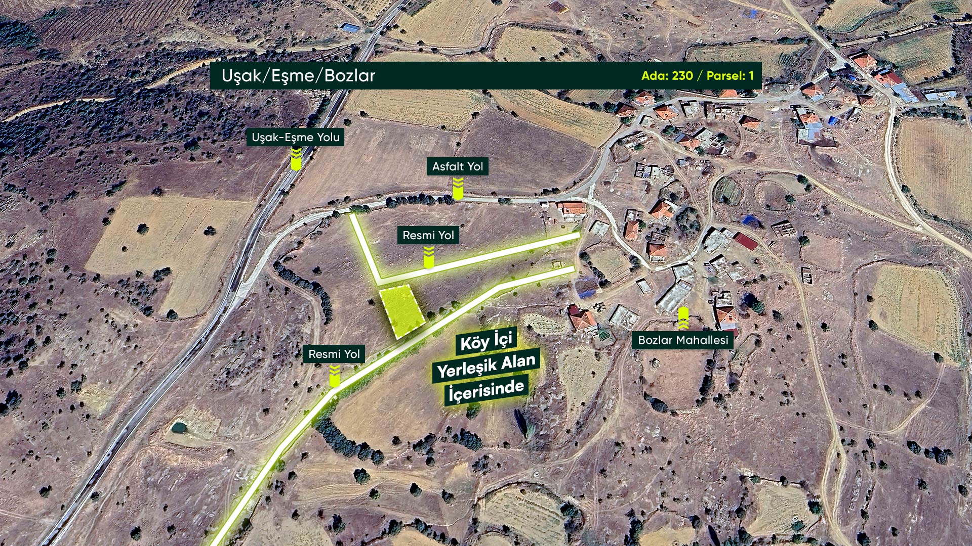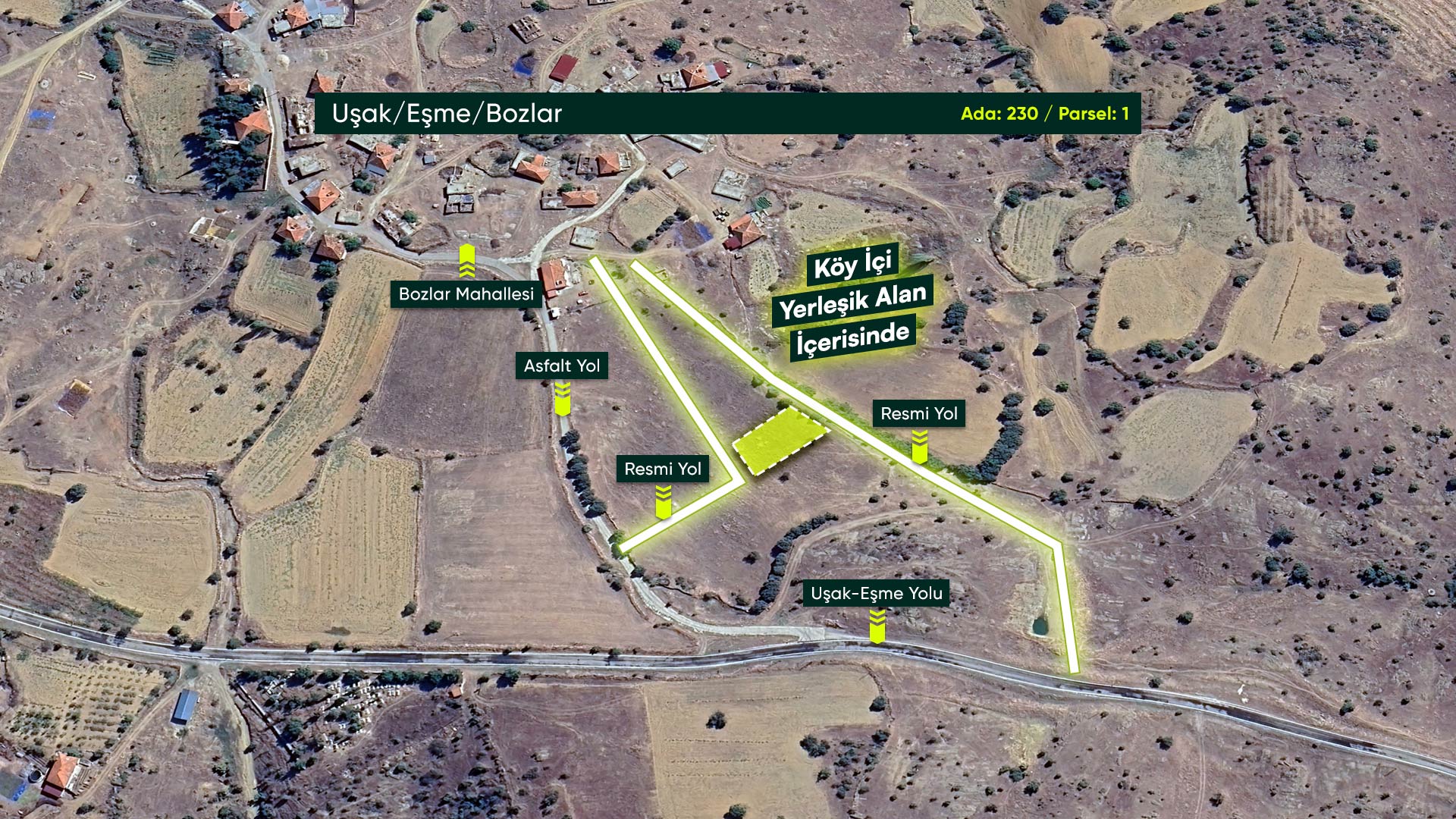 Uşak Eşme Bozlar’da, Çift Resmi Yola Sahip, Köy İçi 2 Kat İmarlı 504 m² Arsa
